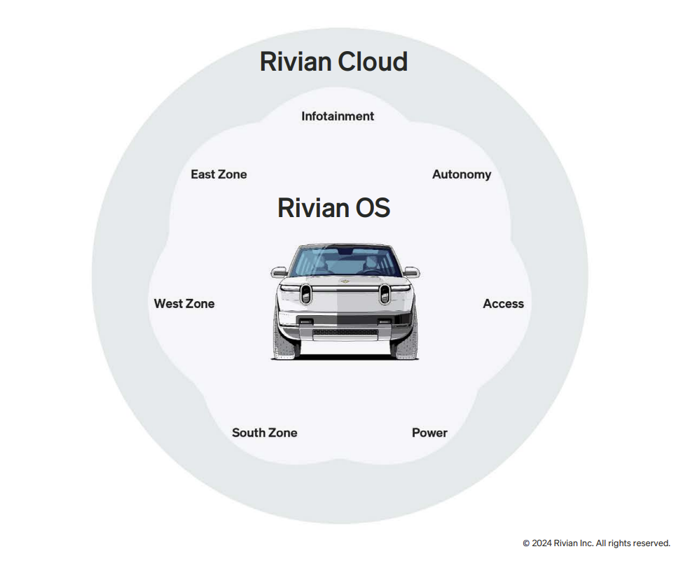 - Rivianâs architecture is scalable and modular.