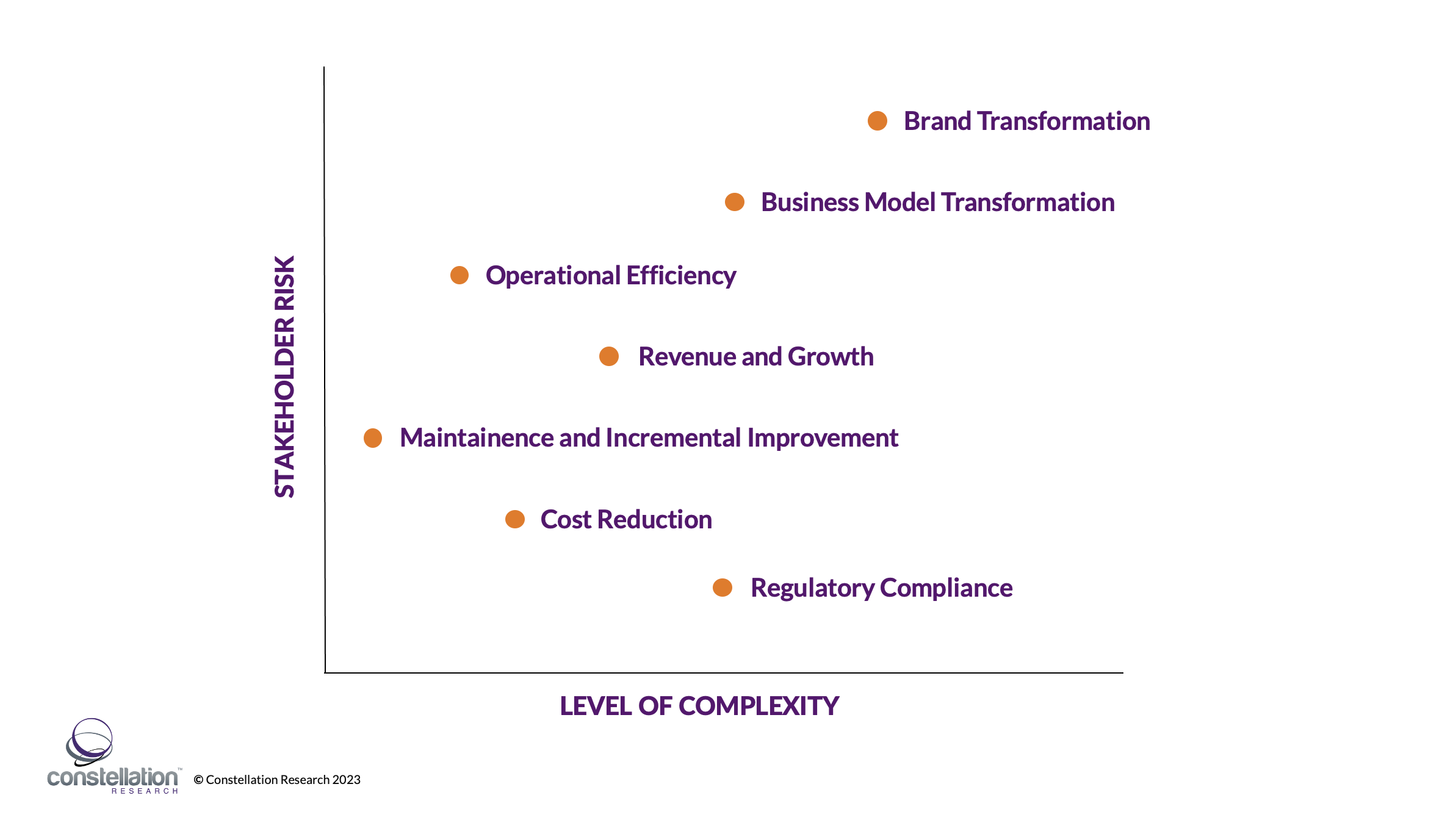 - Degree of difficulty. Cost takeout projects are relatively simple, but revenue and growth transformations are more complicated. The trick is aligning transformation projects with real wins for competitive advantage, compliance, which is always funded, and durable and repeatable results.