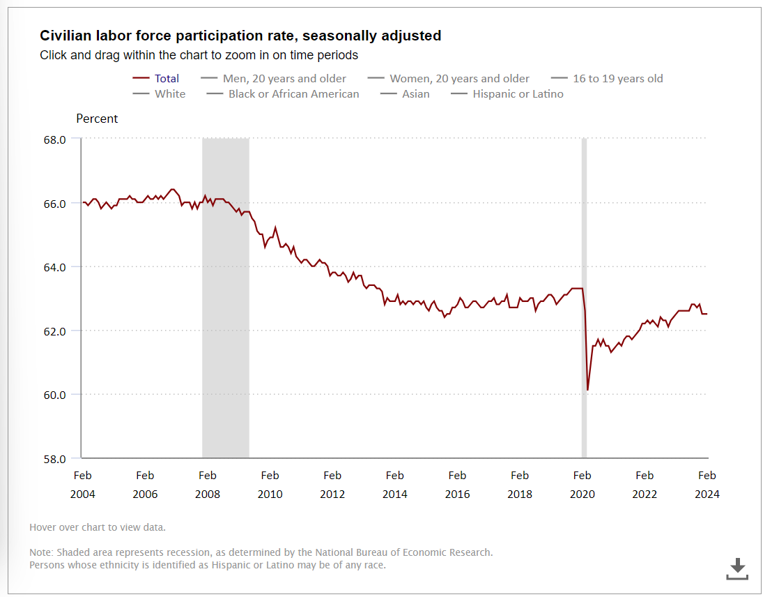"The simple fact is we have a generational change happening in the labor force. Participation rates remain below pre-pandemic levels and it's going to be very difficult given the rate of retirements that we're seeing in Baby Boomers to really see that change. And what you see in the prime age workers were actually at record highs. The problem is not enough prime age people to fill all the opportunities."
