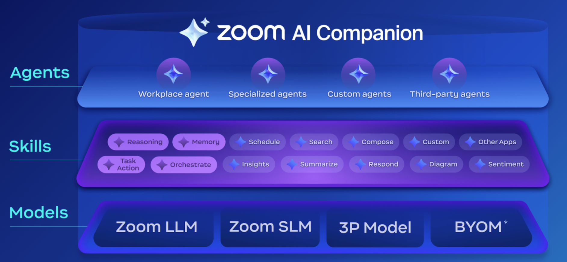Hereâs the Zoom AI Companion stack with bring-your-own model capability being offered in the future.