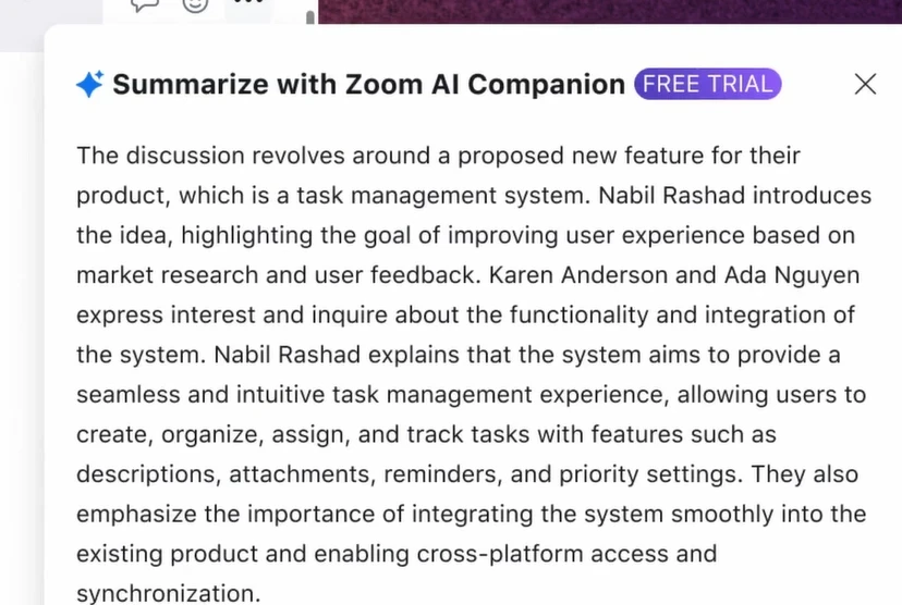 - Zoom Team Chat will use AI Companion to draft messages based on chat thread context and change tone and length. Long threads will get summaries shortly and Zoom said users will be able to auto-complete sentences and schedule meetings from chat in early 2024.