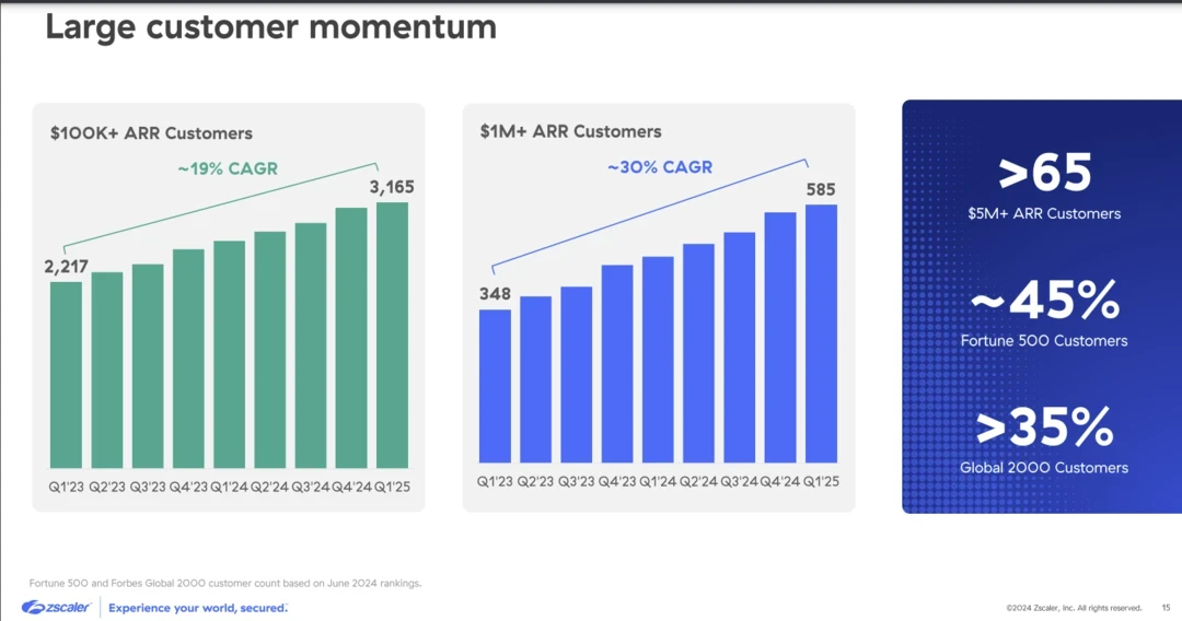 For fiscal 2025, Zscaler projected revenue of $2.62 billion to $2.64 billion, up from its $2.6 billion to $2.62 billion range.