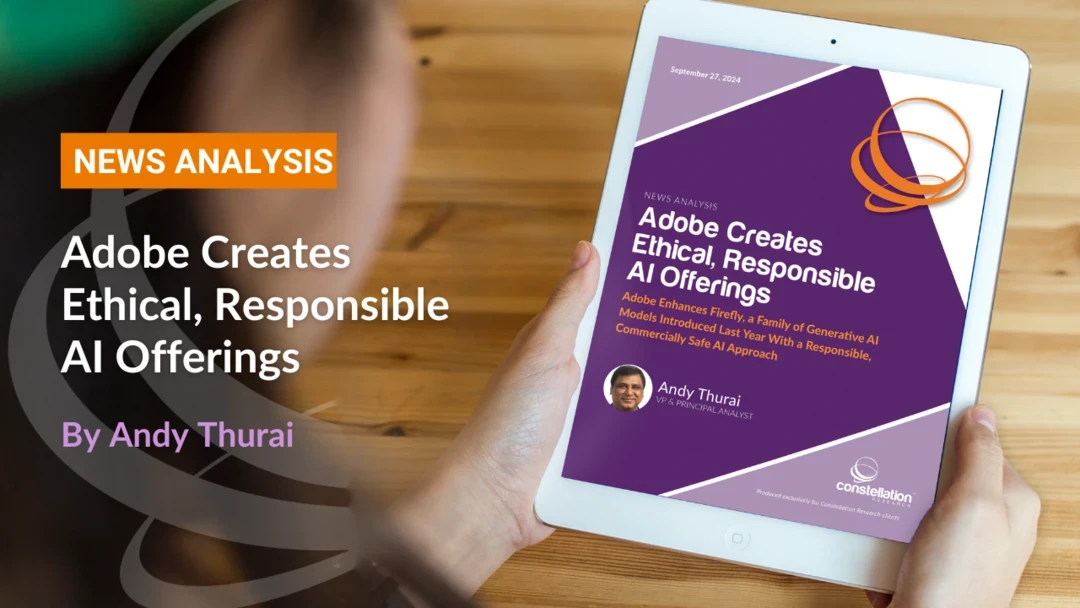 This research report evaluates Adobe’s Firefly initiatives. It identifies key differentiators, examines functional capabilities, considers the offering’s strengths and weaknesses, and suggests use cases. Technology buyers looking to implement solutions powered by Adobe Firefly should use this report along with other Constellation Research reports to evaluate their maturity and readiness for such applications.