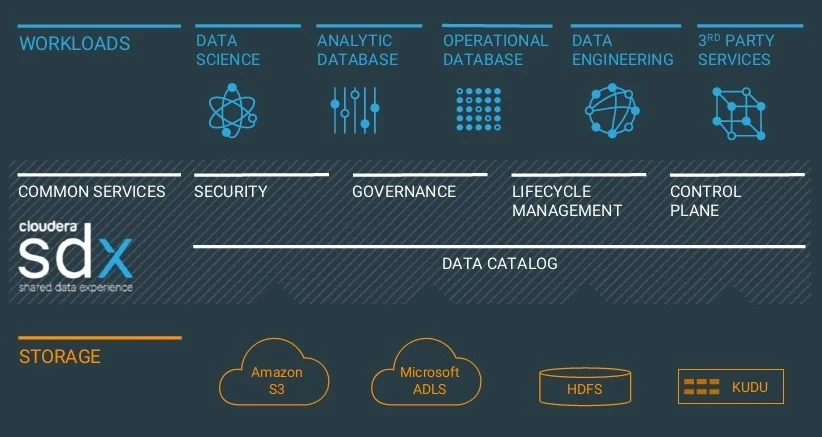 Supporting all these deployment modes is, of course, something that AWS and Google Cloud Platform (GCP) don’t do and that Microsoft, IBM, and Oracle do exclusively in their own clouds. The key differentiator that Cloudera is counting on is its Shared Data Experience. SDX gives customers the ability to define and share data access and security, data governance, data lifecycle management and deployment management and performance controls across any and all deployment modes. It’s the key to efficiently supporting both hybrid and multi-cloud deployments. Underpinning SDX is a shared data/metadata catalog that spans deployment modes and both cloud- and on-premises storage options, whether they are Cloudera HDFS or Kudu clusters or AWS S3 or Azure Data Lake object stores.