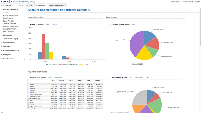 Screenshot of account segmentation to budget dashboard courtesy of Anaplan