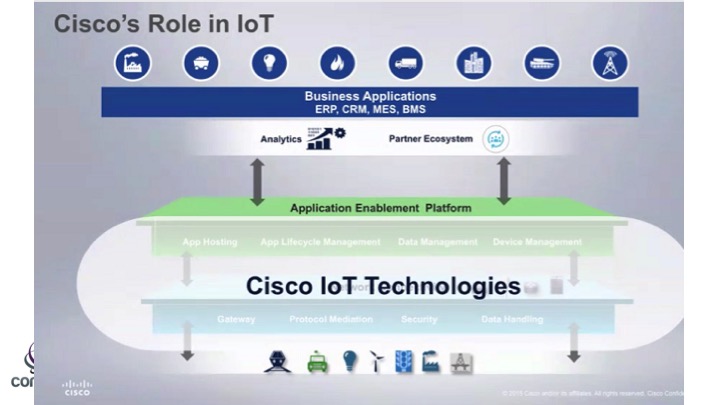 The VP and GM of the IoT Systems, Kip Compton at Cisco, states: âThe Cisco IoT System provides a comprehensive set of IoT technologies and product that change and accelerate the deployment of infrastructure for the IoT. This new systems approach delivers a framework that creates it attainable to deploy, accelerate and innovate with IoT.â His blog giving full details, and his colleagueâs blog, complete with other embedded links, describe in full the six principle elements of the Cisco IoT System;