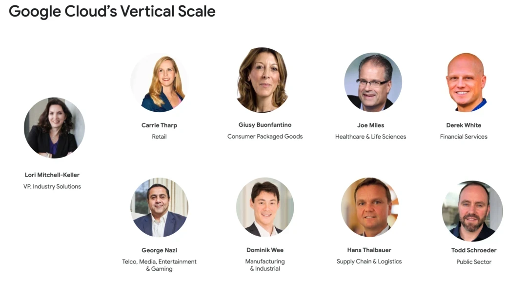 On March 31st, 2021, Google Cloud hosted an Vertical Analyst Roundtable. Google Cloud CEO, Thomas Kurian, opened up the day with a warm introduction on the role industries will play in the growth of Google Cloud. Lori Mitchell-Keller, VP of Industry Solutions shared how Google Cloud differentiates its approach to Industries with customers. The key industries and the leaders for Google Cloud's Verticals include: