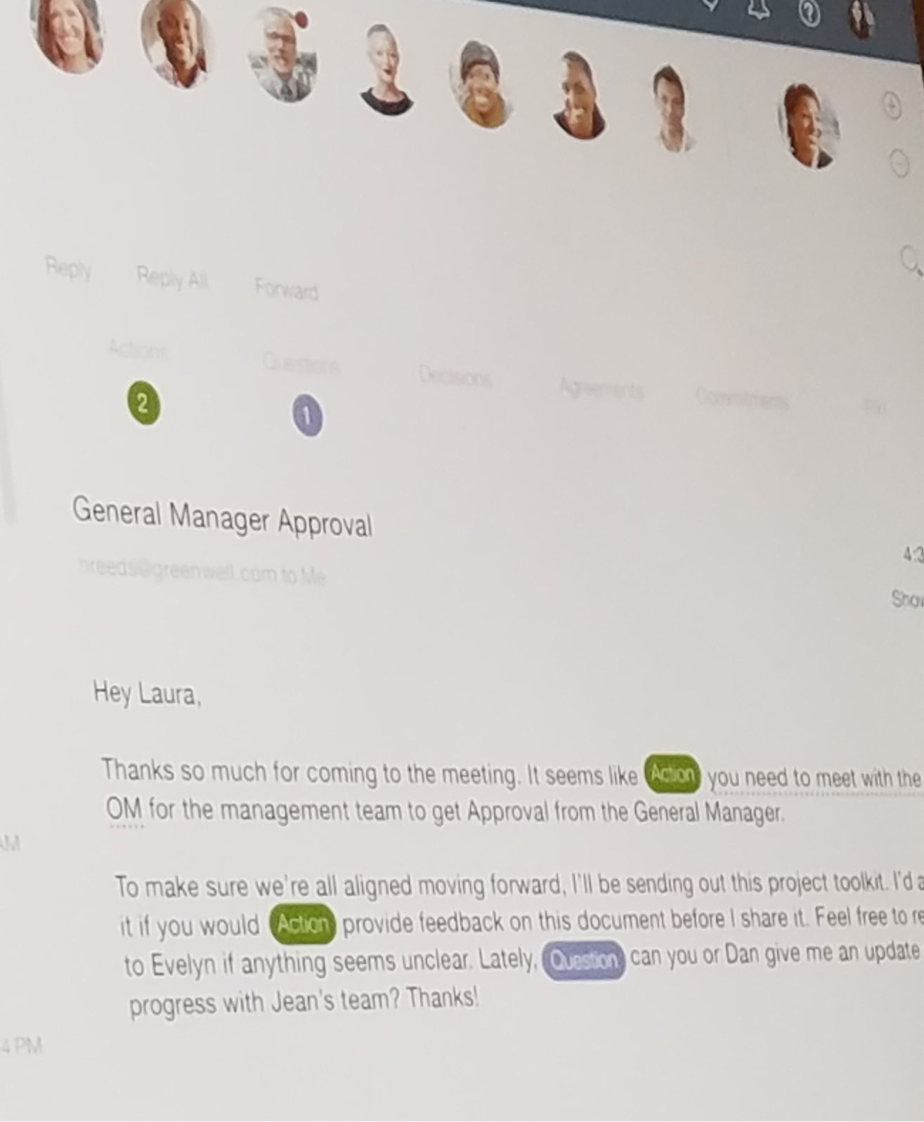 Watson Workspaces is in the early days. Itâs not even a beta, itâs a preview. But thatâs great. One of the main things Iâve criticized IBM about over the years is how slow they have been to move from slideware to software. IBM has been talking about adding cognitive capabilities to collaboration tools for years, and they are finally starting to deliver. Itâs early, but they are already learning things from Workspace that will help with future versions of IBM Verse and IBM Connections. For example, the image below shows a concept for email that applies similar âaction, question, decisionâ labels inside the body of the message making it easy to quickly scan and get the gist of what you need to know/do.
