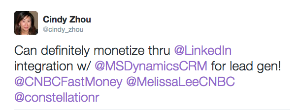 Big news in the tech world back in June with Microsoft announcing they were acquiring LinkedIn for $26.2b. I remember watching CNBC Fast Money the day of the announcement and Melissa Lee asking the panel how would Microsoft monetize the acquisition? No one on the panel seemed to have an answer and I sent out this tweet at the time: