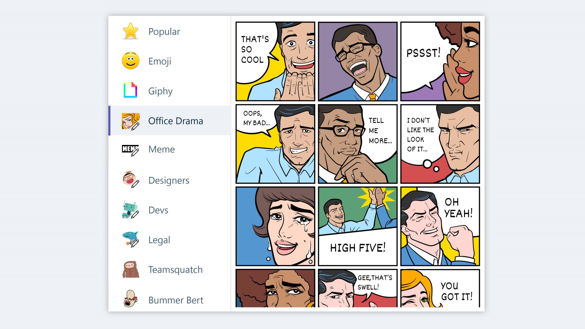 With respect to user interface, Microsoft is followâs Slackâs lead by making sure Teams has an element of fun to it. They provide several emoji and gifs, all of which are customizable.
