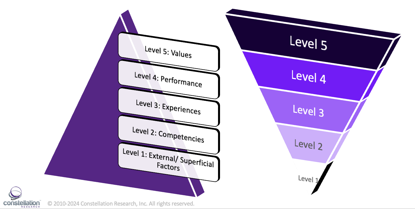 - Level 5 Values: attributes based on core principles, values, and beliefs