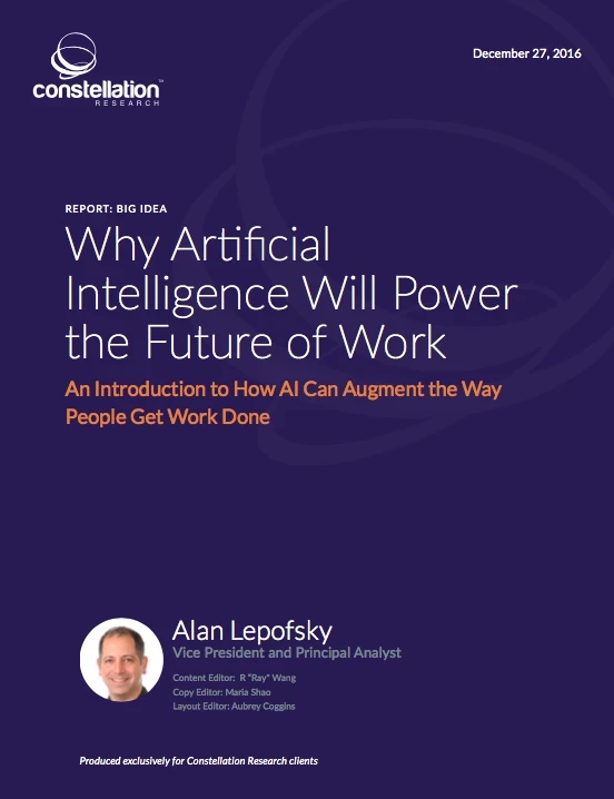 Constellation Research customers can purchase the full report, Why Artificial Intelligence Will Power the Future of Work, by clicking here.