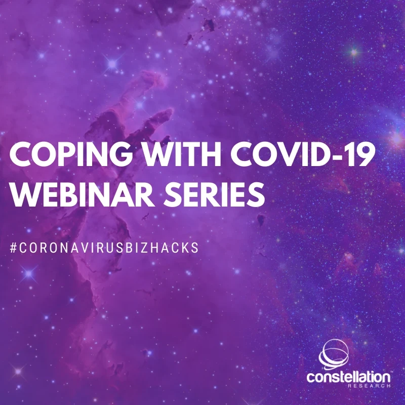 Big business decisions are being made as the Coronavirus wreaks havoc on the health of our families, teams, customers and communities. With all the fear and concern, many executives have started looking for best practices, insights and straight talk on the potential response and impact. Join us for three different discussions on how Constellation Research sees this global threat and thinking around how to make sure business keeps moving post-COVID-19. Hosting a conference? Extending remote work policies? Employee health concerns? Loss of trust and increased fear? We’ve got some answers.