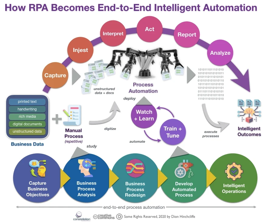 In fact, wouldn't it be nice if most of this was already assembled as a ready-to-go solution around a capable RPA engine so it could be quickly applied to the business? This is, in fact, where a good part of the RPA industry is currently headed, so that businesses don't have to bolt-on the inputs and the outputs to an RPA tool, and then layer on the necessary analytics, operations, management, and governance capabilities.