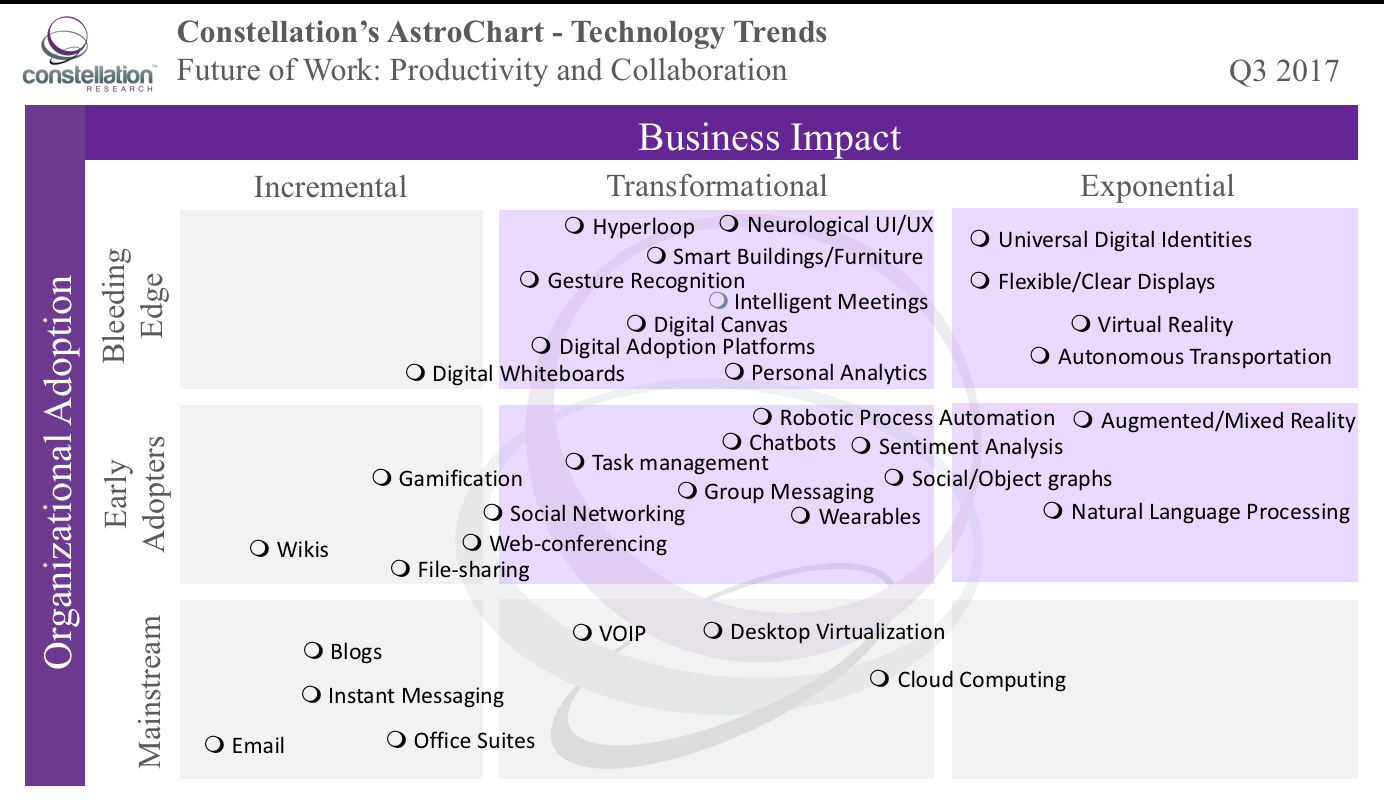 Yesterday I celebrated my 6th anniversary at Constellation Research. I want to thank Ray Wang and my colleagues for all their support and how much I learn from them everyday. Also, to our amazing clients, you're why I do this. Since I began here my goal has been simple: to provide pragmatic advice about what's coming next for the way individuals and teams get work done. I'm not a cheerleader for change just for the sake of it, nor do I criticize new ideas just because they seem a little out there. I look for trends and patterns in technology and culture and try and extrapolate how they will apply to the business world.