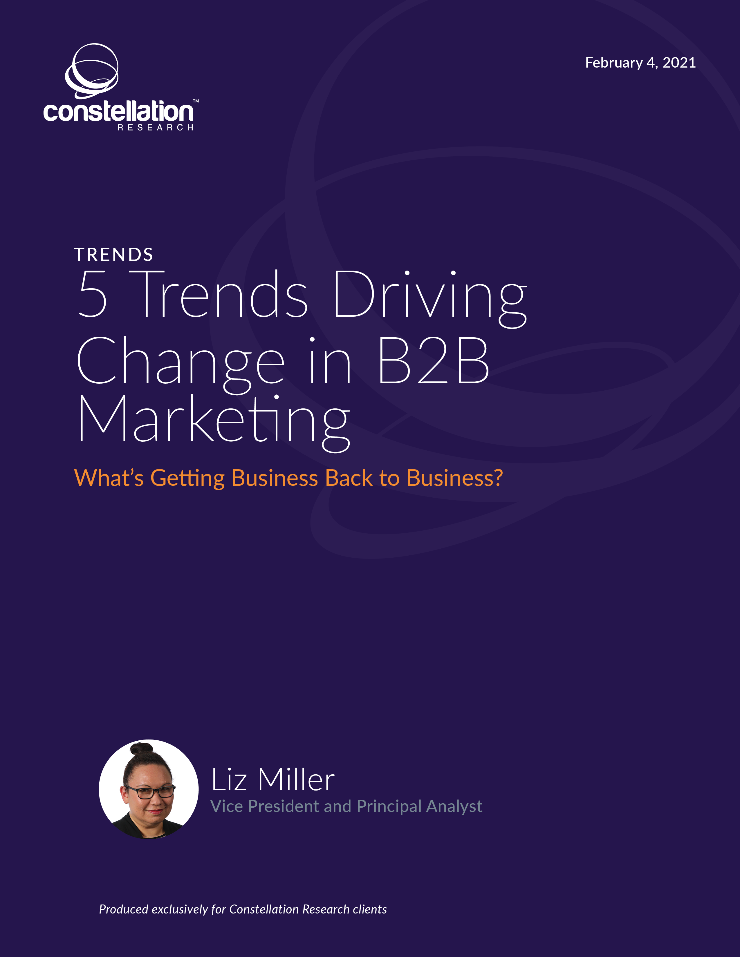 (Random end note here: This is just one of the 5 B2B Marketing trends outlined in my latest report. If you want more trends, have questions, want to debate best donut spots, reach out! Iâm happy to blab endlessly about thisâ¦not just as an analyst but also as a recovering and constantly evolving B2B marketer. liz at constellationr.com, lizkmiller on Twitter. Let's talk!)
