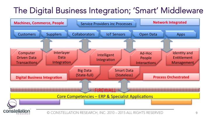 Currently the development of Technology Intelligence Integration Middleware to provide dynamic loose-coupled Orchestrations is just starting to emerge, some from startups, and others such as IBM Blue Max, or SAP S/4 HANA, are defined directions for products sets that are just starting to ship. It is however crucial to recognize that Big Data and Smart Data should be understood by functional use in loose, or tight, coupled systems and with, or without State when examining the deployment of any new Middleware.=