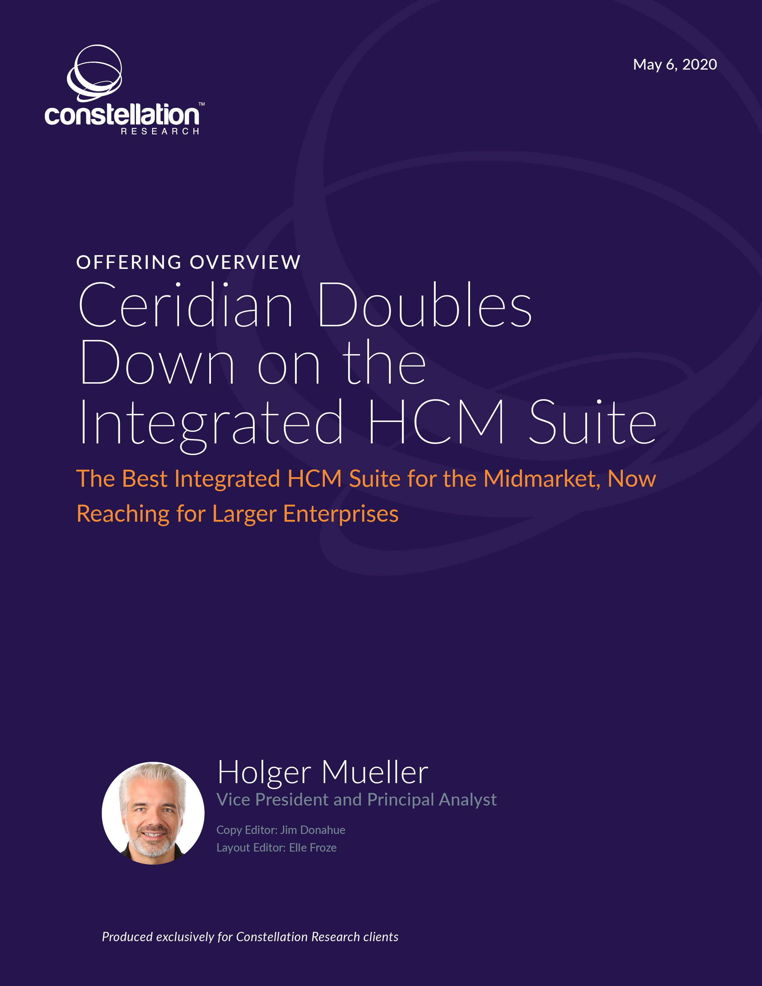 This report provides an overview of Ceridianâs human capital management (HCM) offering, Dayforce, and analyzes its ability to satisfy enterprisesâ demands to power their people operations with an integrated HCM suite. It highlights recently delivered and long-term differentiators that set Ceridian Dayforce apart and enable people leaders to help their organizations achieve Enterprise Acceleration and change the Future of Work for the people in their enterprise.