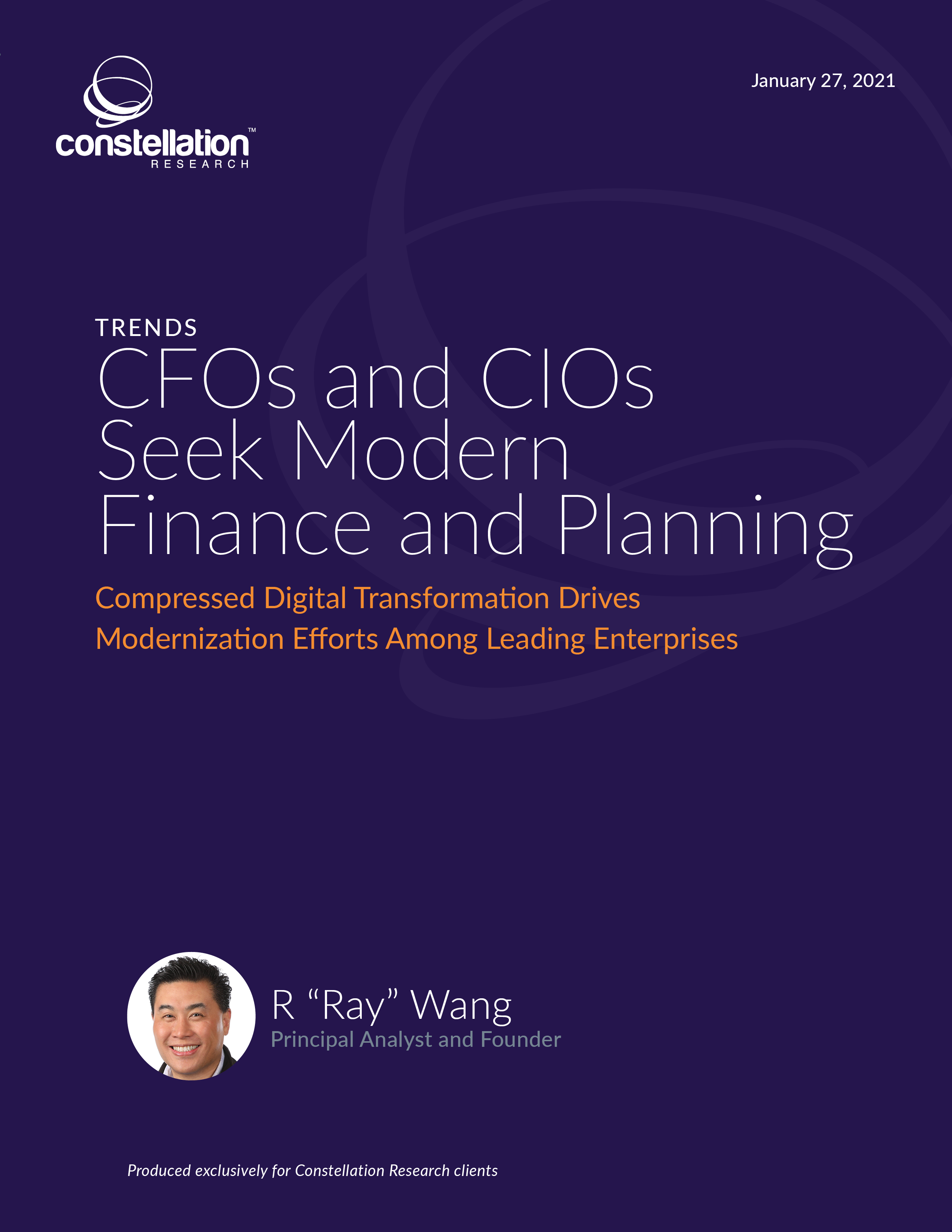 In the fall of 2020, Constellation Research conducted qualitative and quantitative interviews with more than 300 CIOs and CFOs about their 2021 priorities for financial management and planning. Through these conversations, Constellation sought to understand the underlying drivers for priorities in the new year as well as the pandemic and post-pandemic changes that would influence 2021 decisions for finance, planning and accounting (FP&A) and technology professionals.