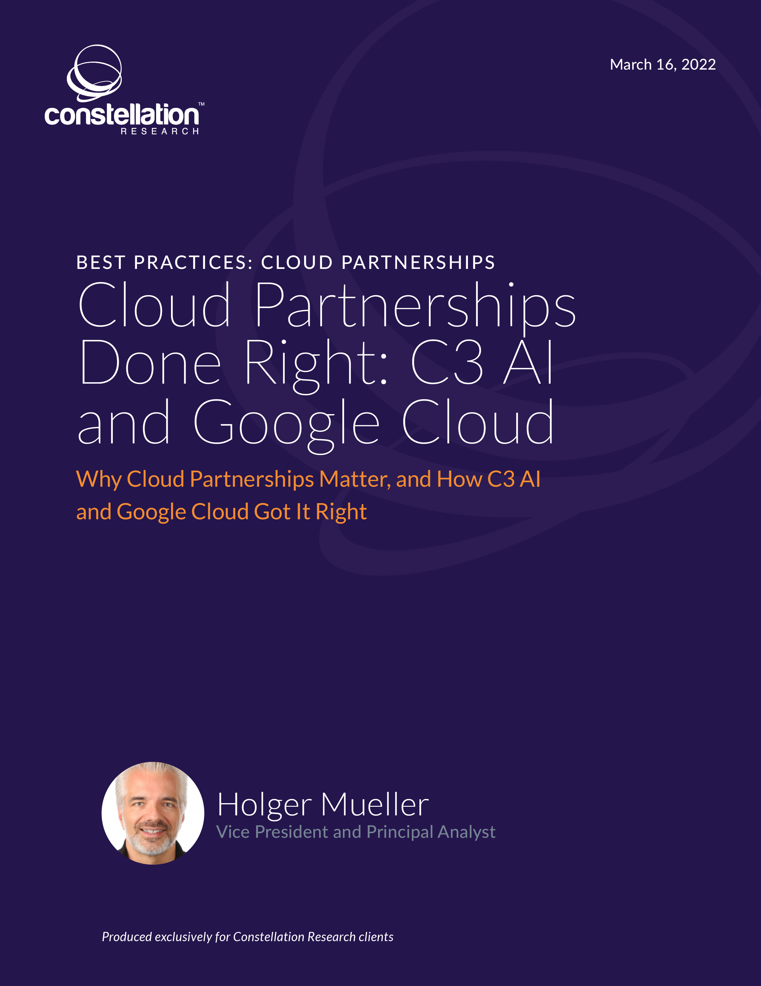 This Best Practices report explores why cloud partnerships between SaaS/PaaS vendors on the one side and PaaS/IaaS vendors on the other matter in the 2020s. It highlights the important benefits enterprises can achieve by examining the partnership between C3 AI and Google Cloud and concludes with recommendations for CxOs on how to successfully select and operate with vendors that offer cloud partnerships.