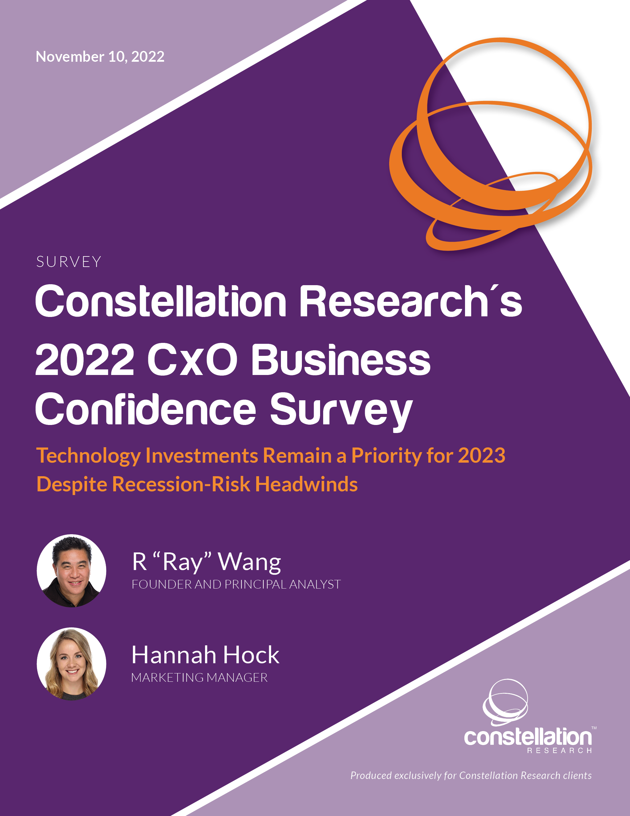 Constellationâs 2022 CxO Business Confidence Survey assesses C-suite executives in todayâs business and technology climate as well as their financial outlook for 2023. The survey asked respondents to identify top business issues impacting their enterprises, weigh in on their state of investment in digital technologies, and confirm which service and software vendors are top of mind in the industry.