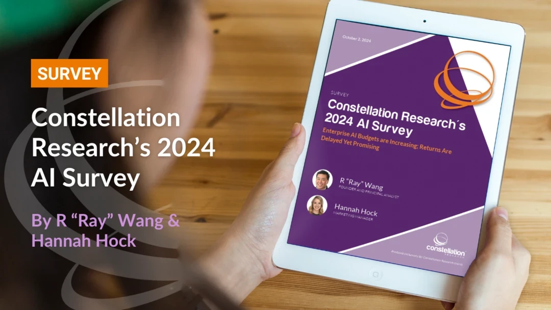 Constellation’s 2024 Q3 AI Survey provides insight to CxOs on the main drivers for business investment in AI, how much is being invested in AI, where organizations are in the AI implementation process, what AI is primarily being used to accomplish, whether there is adoption resistance to AI, and how AI will impact the workforce.