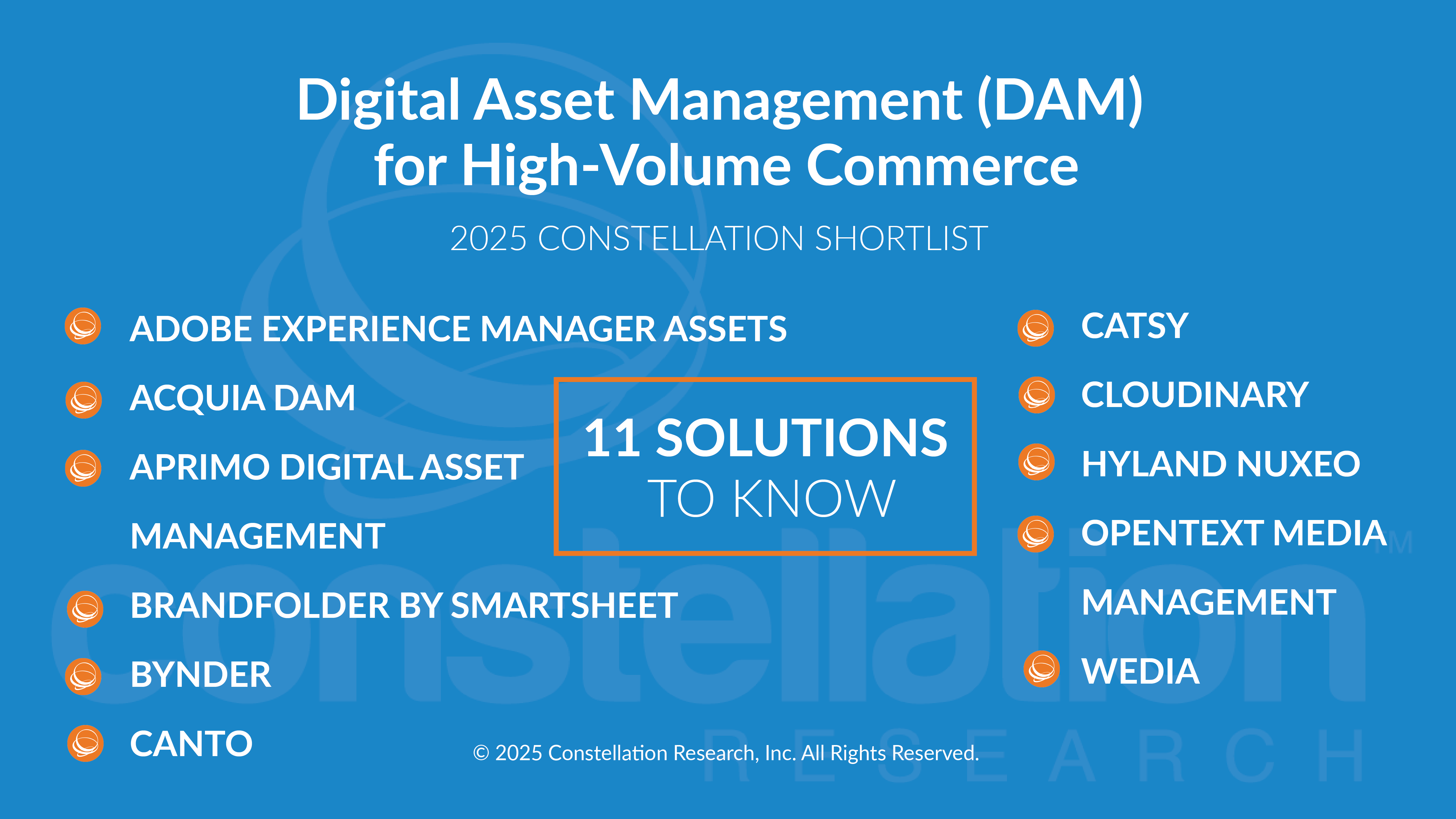 The category is rapidly evolving, driven in part by the introduction of generative and agentic AI tools, but also from an evolving convergence category as more content management and digital experience solutions begin to natively embed a robust DAM offering to their content platforms. Constellation expects to see more consolidated offerings like HCL Software’s Total Experience Platform or the Storyteq Content Marketing platform where DAM is an integrated offering and not a standalone solution. For the purpose of this Shortlist analysis, those platforms integrated DAM capabilities and not individual offerings are not included.