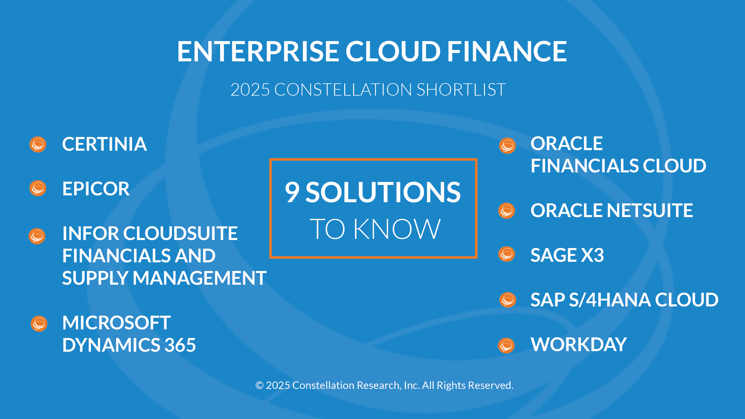 Enterprise cloud finance applications provide the backbone of accounting, finance and treasury for organizations. Constellation estimates the size of this software market to reach $13.3 billion by 2030 at a 12.3% CAGR. These applications automate processes such as financial close cycles, regulatory requirements and cash management. The software supports the financial operations and delivers the core foundation for enterprise resource planning and back-office systems.