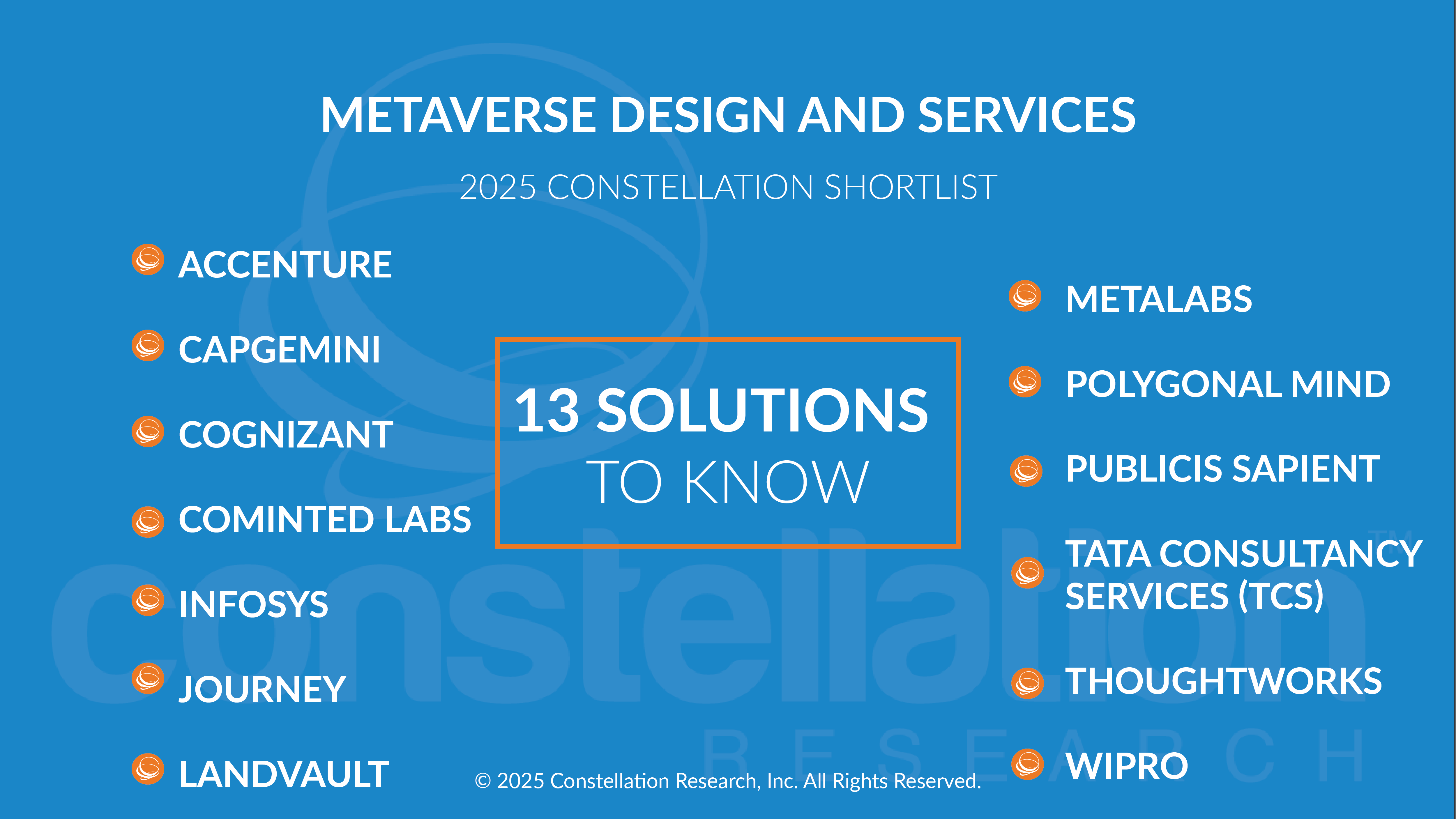 Constellation evaluates more than 50 solution providers categorized in this market. This Constellation ShortList is determined by client inquiries, partner conversations, customer references, vendor selection projects, market share, and internal research.