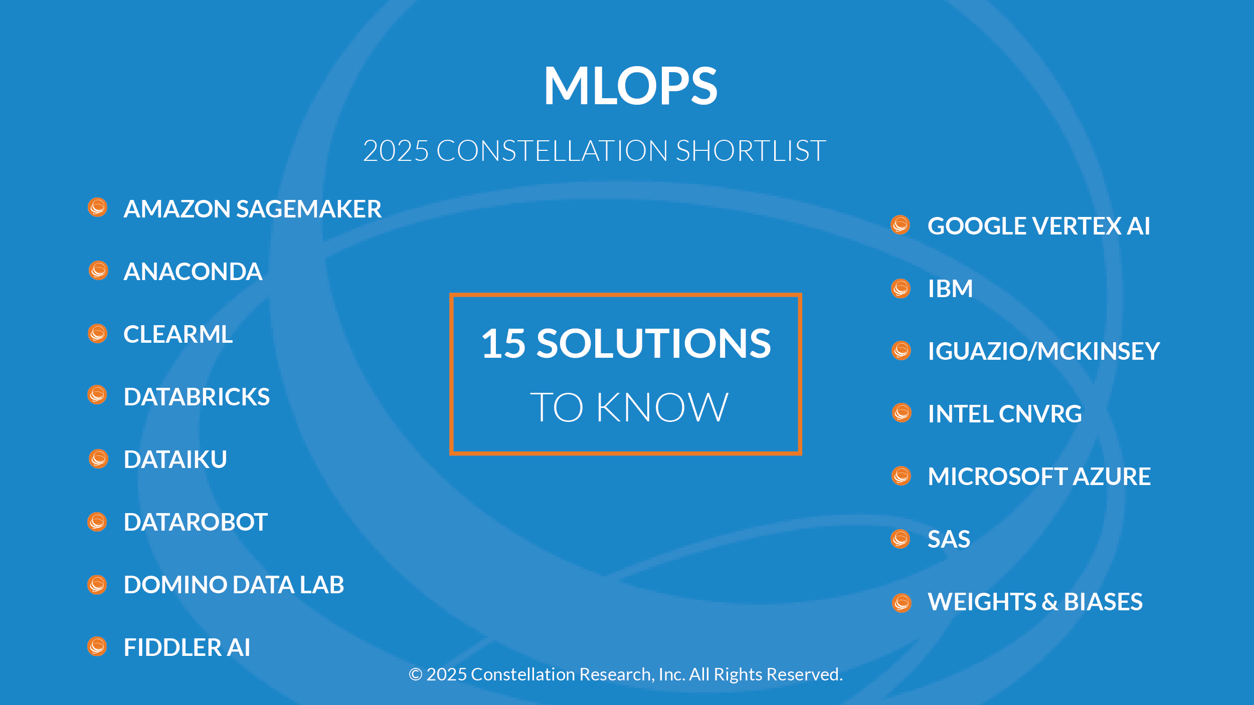 Constellation evaluates more than 20 solutions categorized in this market. This Constellation ShortList is determined by client inquiries, partner conversations, customer references, vendor selection projects, market share and internal research. Of those solutions, the following are short-listed to be in our future market overview deep-dive MLOps report.