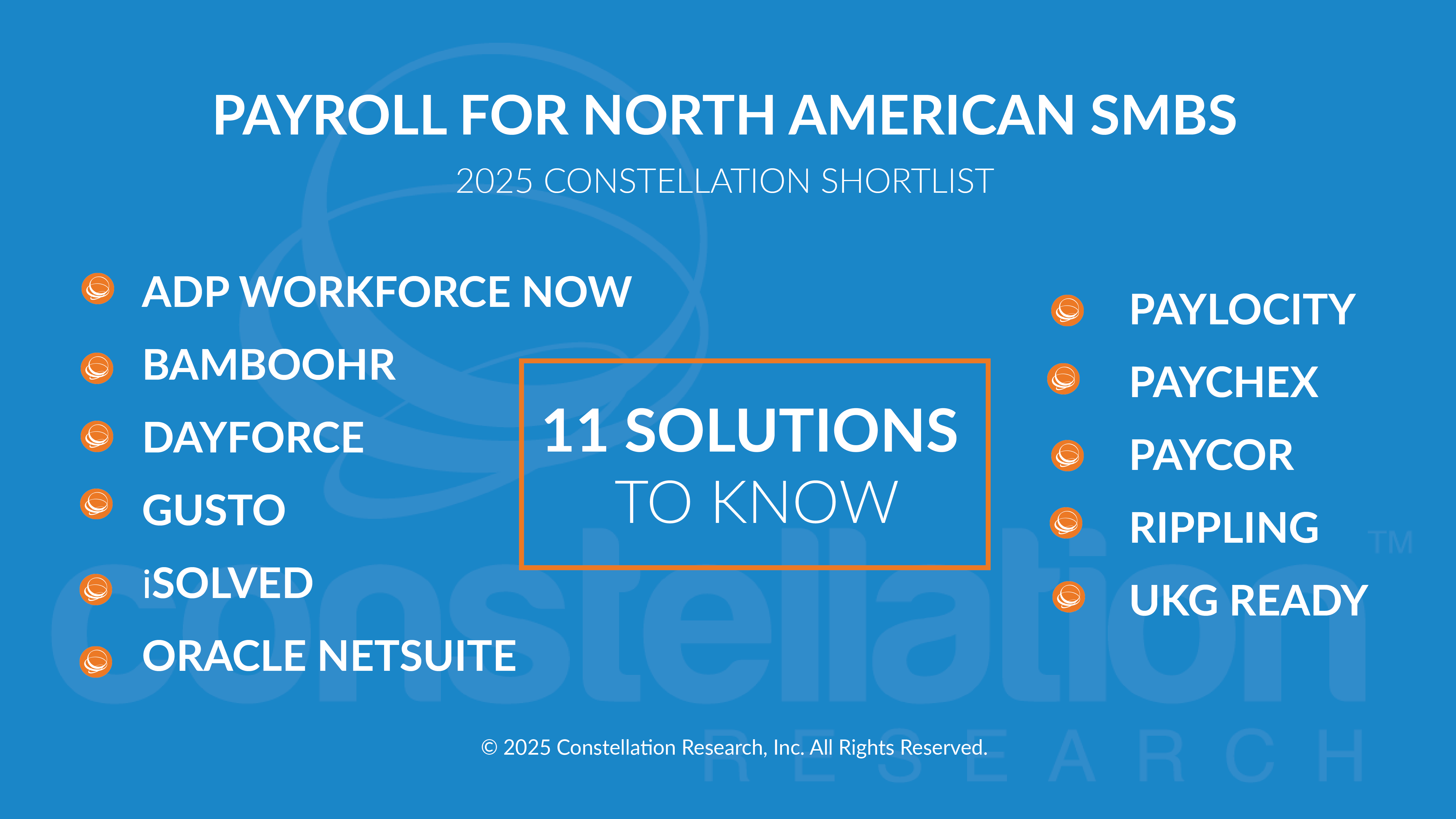 To be a player for the SMB payroll space (100 to 5,000 employees / payees), vendors need to provide capabilities for payees to understand and manage their paychecks. They also need to enable payroll managers to efficiently monitor and manage the payroll cycle and take advantage of the cloud as a deployment form. More and more, the capability to have an always-on payroll matters for enterprises, meaning that all payroll-relevant events are instantly calculated and the payroll is always ready and processed.