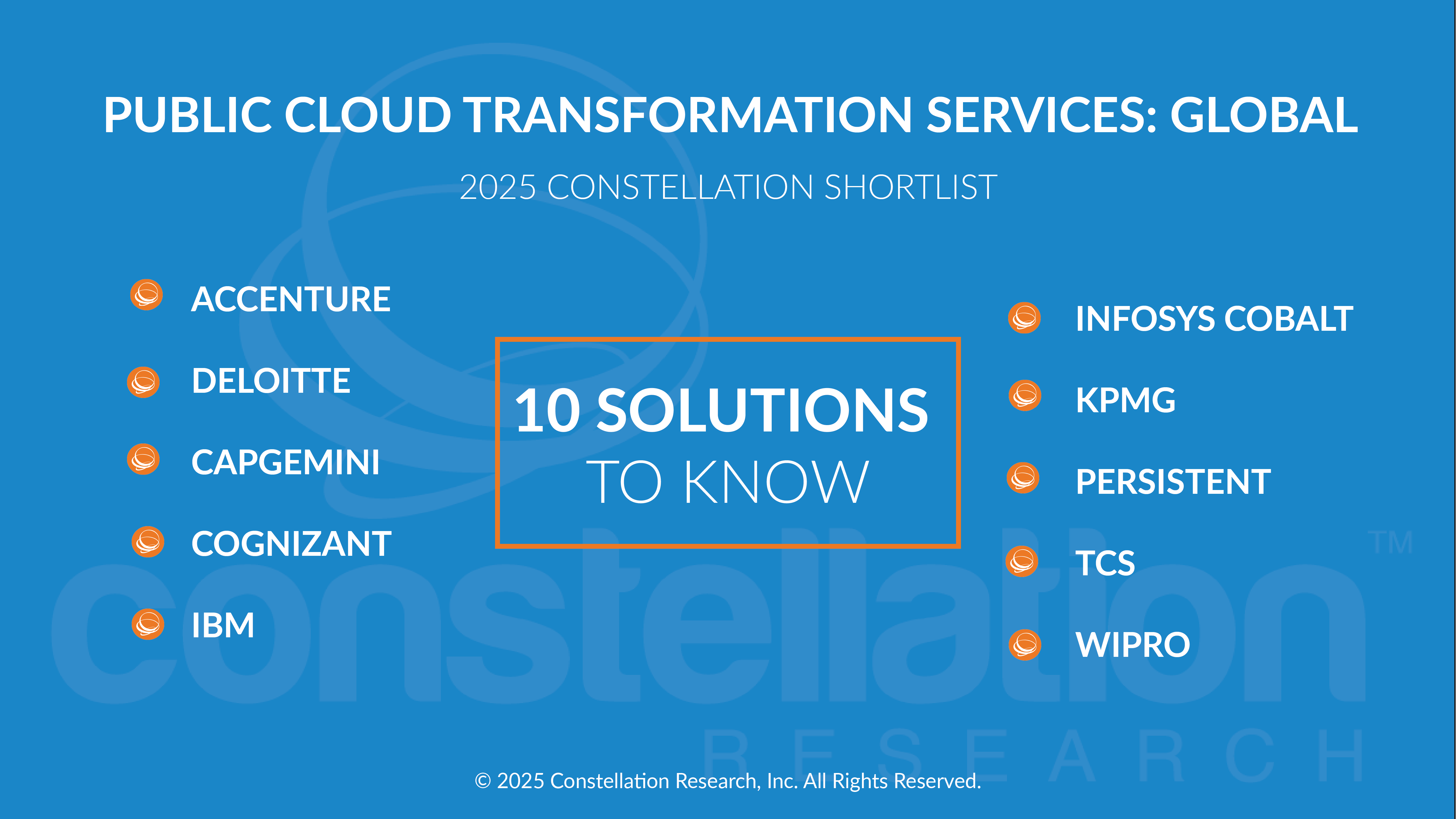 These vendors are helping clients bring together complex cloud migrations that meet Constellation's first four levels of the five-level maturity in cloud-led business transformation. These levels include: