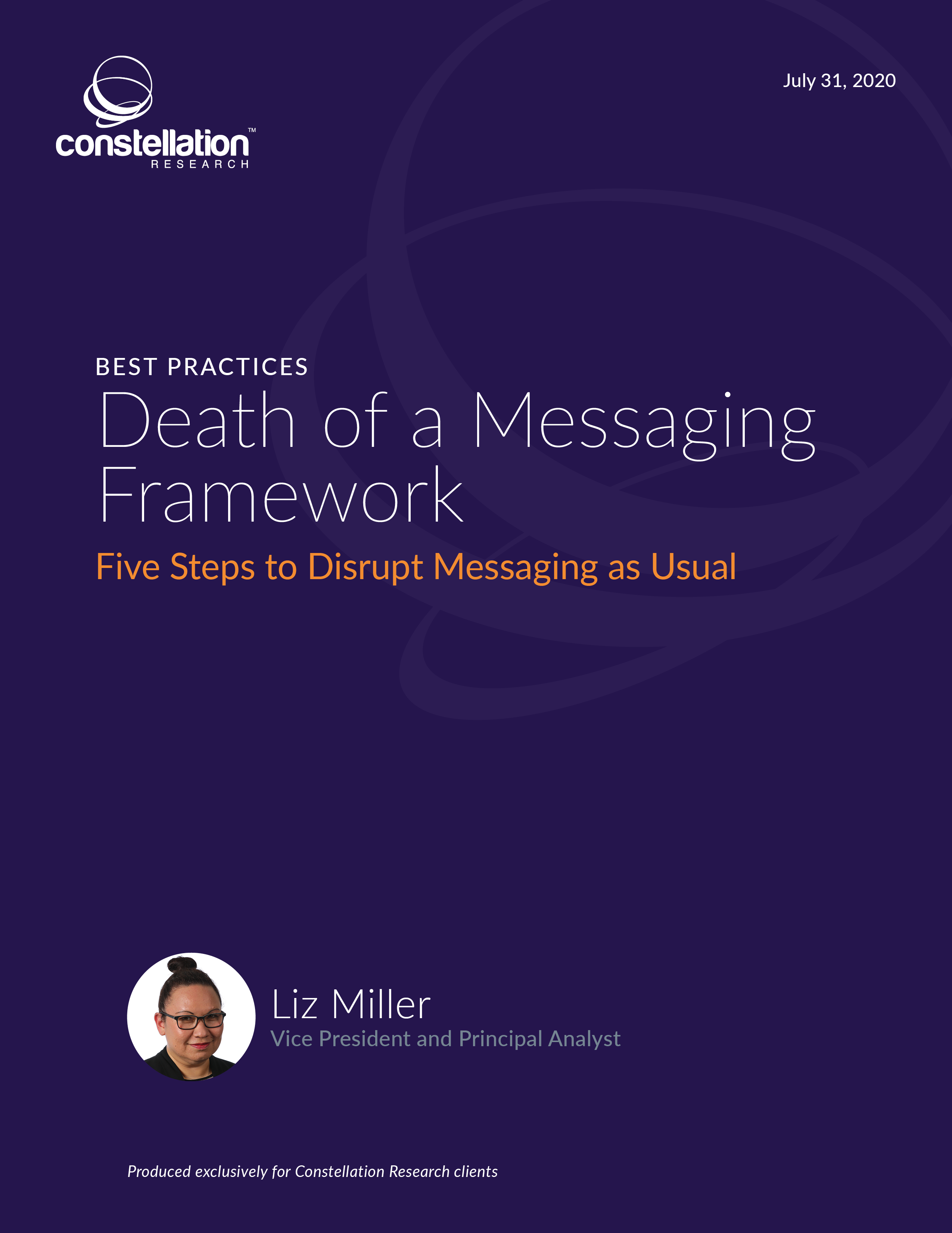 Messaging can pierce through monotony to differentiate and disrupt a customerâs journey. The issue on the minds of many executives is if that disruption is in favor of the organization or at its expense. As customer expectations shift rapidly due to current economic, geopolitical and social upheavals, organizations have an opportunity to rethink how the brand messaging that is used to guide any and all forms of customer engagement and interaction can be successfully rewritten for a continuously evolving new normal. This report outlines key best practices in rethinking and revitalizing the exercise of brand-messaging framework creation. It includes the critical steps to disrupt the messaging process, questions to ask critical stakeholders and layers of messaging necessary to captivate the customer in the process.