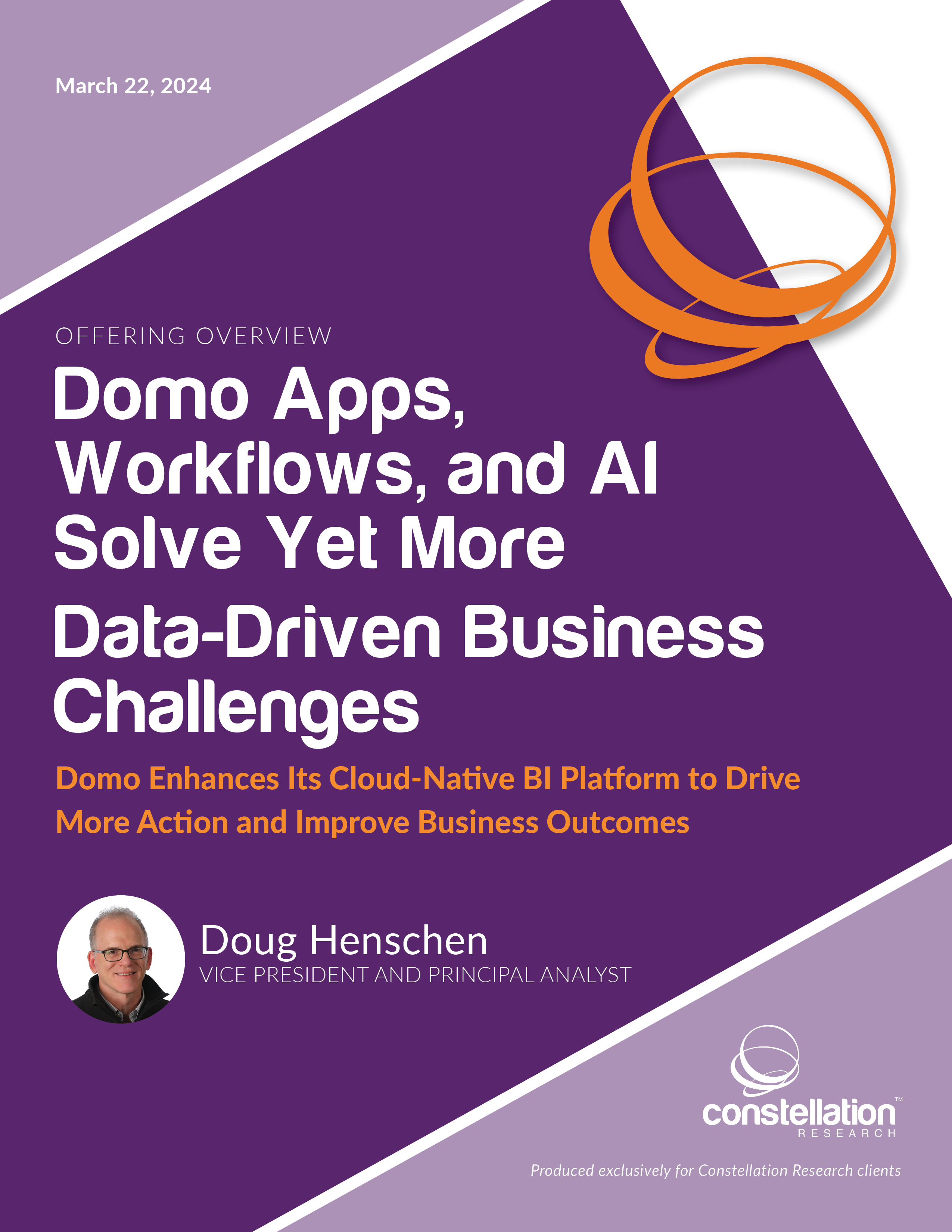 This Offering Overview provides an in-depth look at Domo, identifies key differentiators, examines functional capabilities, and considers the platformâs strengths and weaknesses. Technology buyers should use this report to evaluate Domo for implementation.