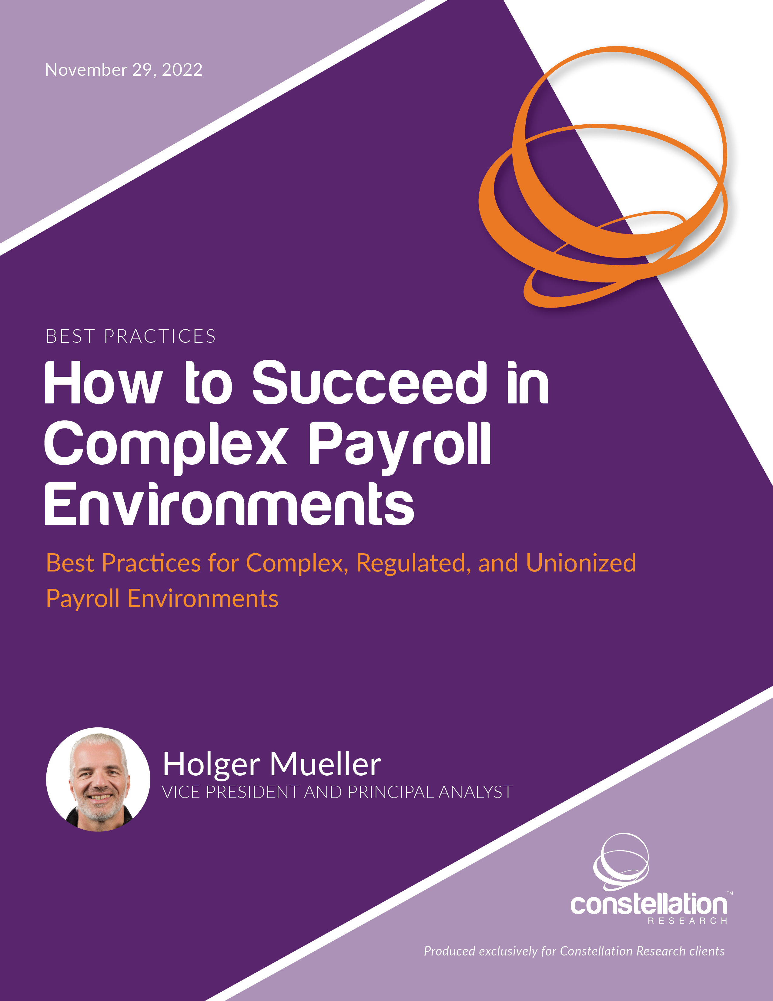 This report covers the trends and challenges underlying the operation of payroll in complex environments. These environments often are found in regulated and unionized industries, where the complexity of labor bargaining makes payroll a bigger challenge than in other industries. The report highlights payroll challenges, discusses best practices, and concludes with a set of recommendations for HR leaders on maintaining âpax payrollâ (the smooth and flawless working of a payroll).
