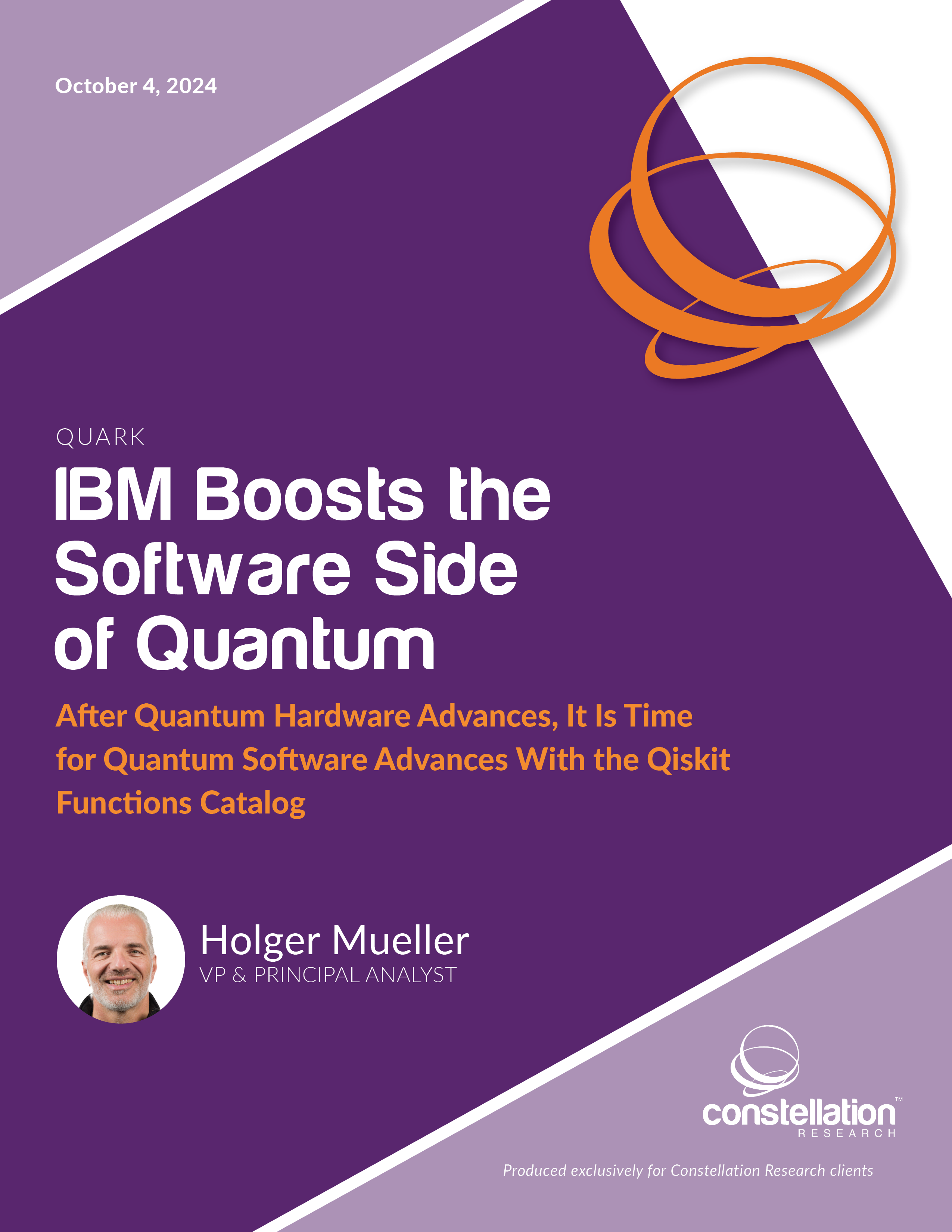 The race for the next computing platform, quantum computing, is at full speed. As with every new computing platform, the focus is first on getting the hardware right. With IBM making substantial progress toward its end-of-2024 goals, naturally the relative focus switches to software, because hardware without software is justâ¦hardware. This blog post investigates the recent announcement from IBM regarding the Qiskit Functions Catalog and describes why it matters and what CxOs should do with quantum.
