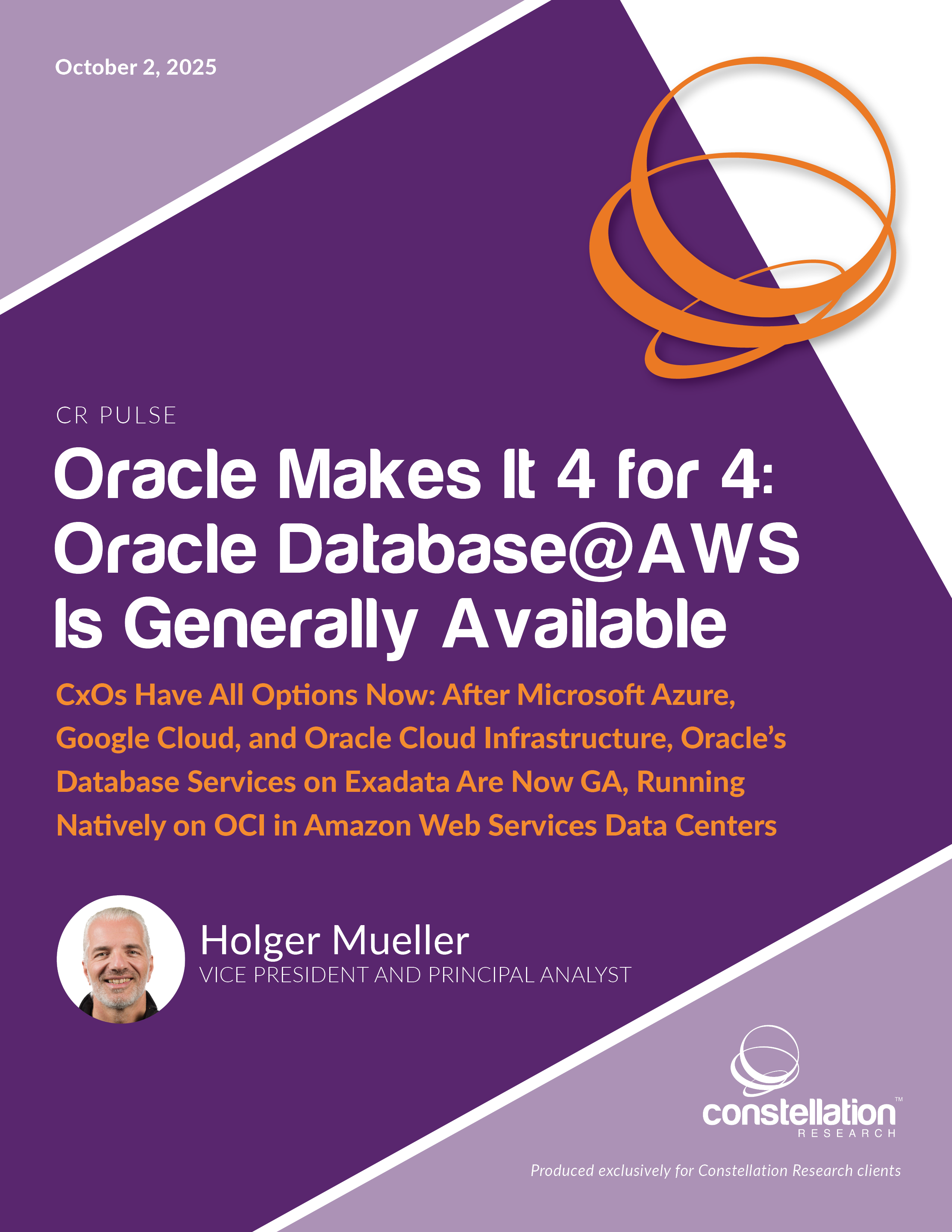 Oracle Makes It 4 for 4: Oracle Database@AWS Is Generally Available