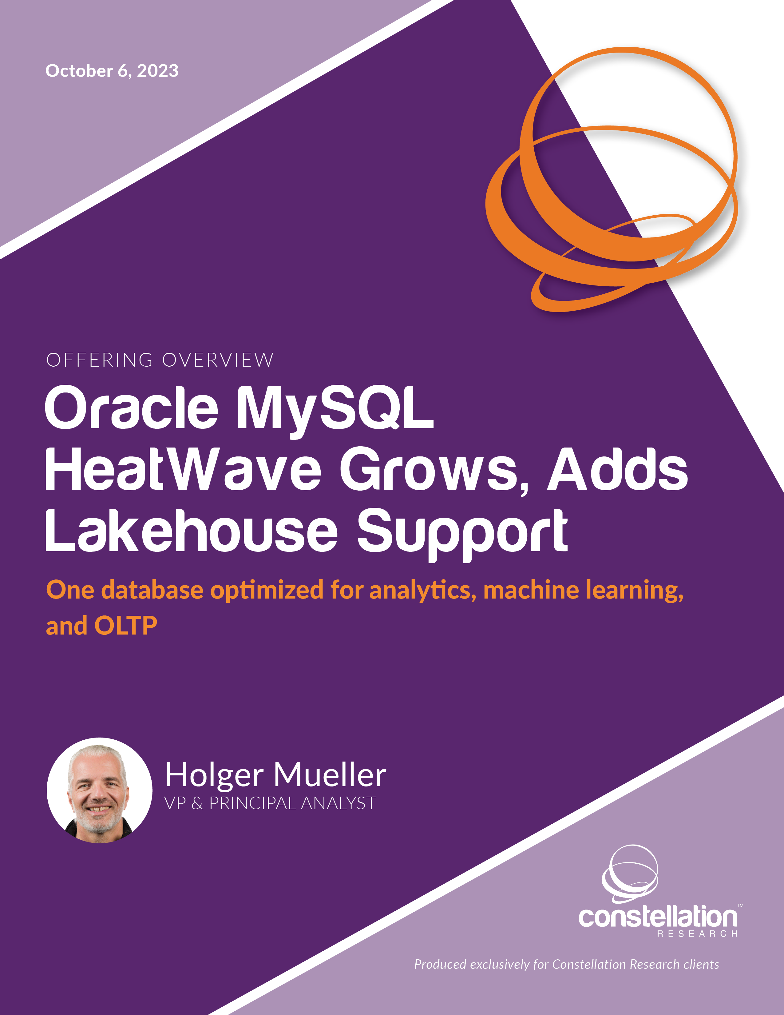 This Offering Overview examines the new capabilities of Oracle MySQL HeatWave, which added lakehouse support in summer 2023. The report describes the underlying market trends, introduces the vendor, and presents key differentiators for Oracleâs offering. It continues with an analysis of the vendorâs strengths and weaknesses and concludes with a set of tangible and actionable recommendations for CxOs.
