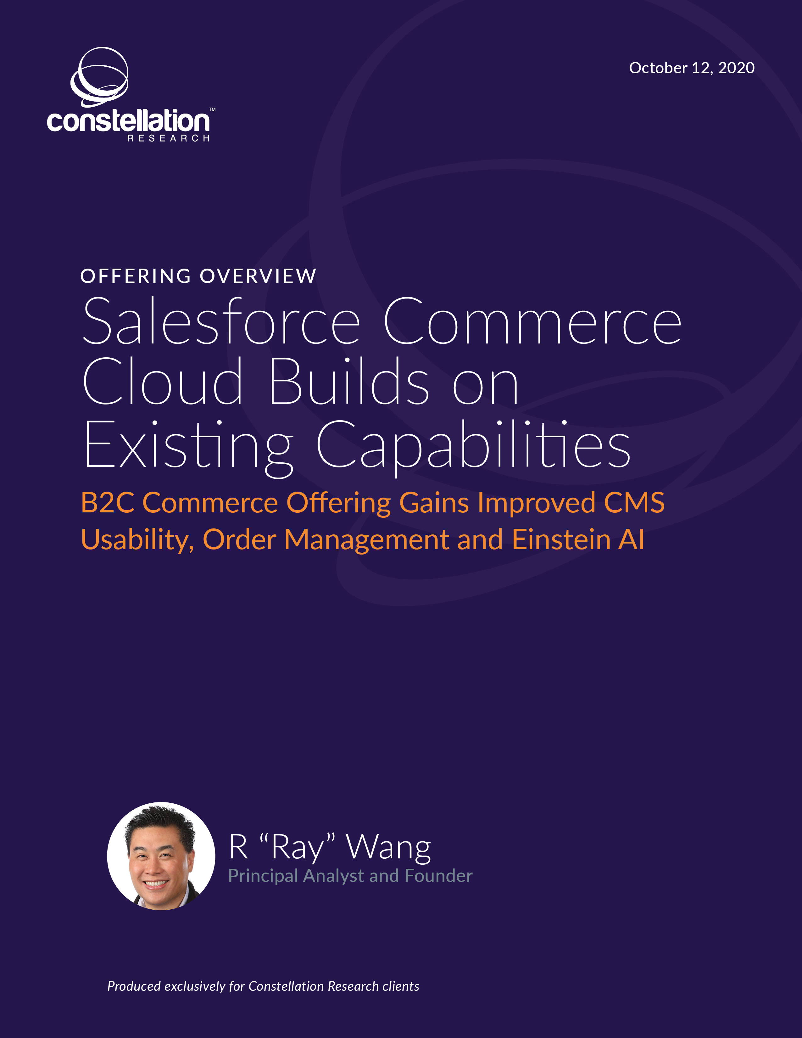 This Offering Overview examines Salesforce Commerce Cloud within the context of the all-in-one commerce cloud market. The report includes a model for the 20 steps of the perfect order, the key commerce trends in a post-pandemic world and the key vendors working to deliver on end-to-end commerce solutions.