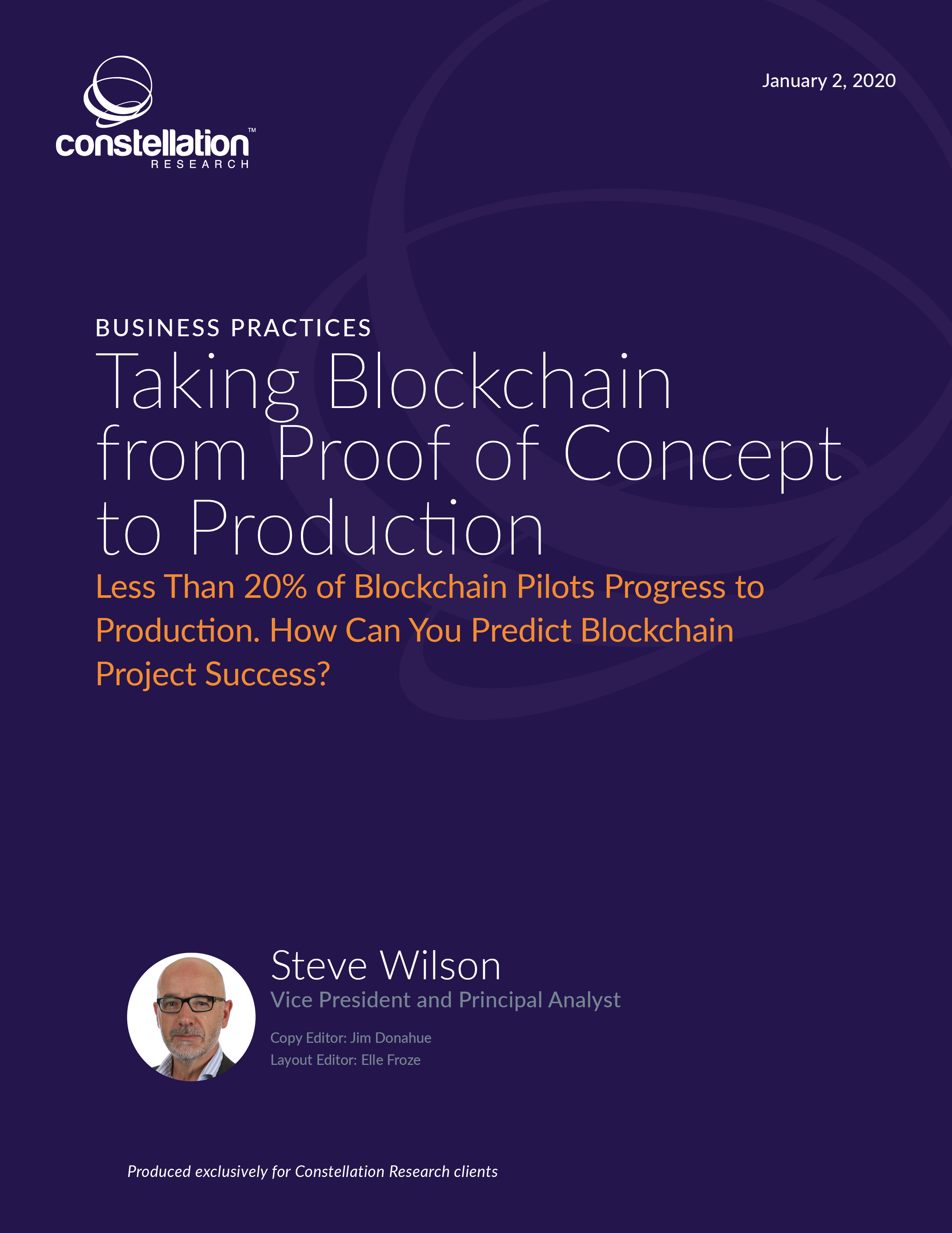 Between 80% and 90% of enterprise blockchain projects never proceed beyond proof of concept or pilot. While Constellation Research admires a âfail-fastâ philosophy, we know that many of these projects were expected to proceed to production and that businesses are disappointed by the low conversion rate.