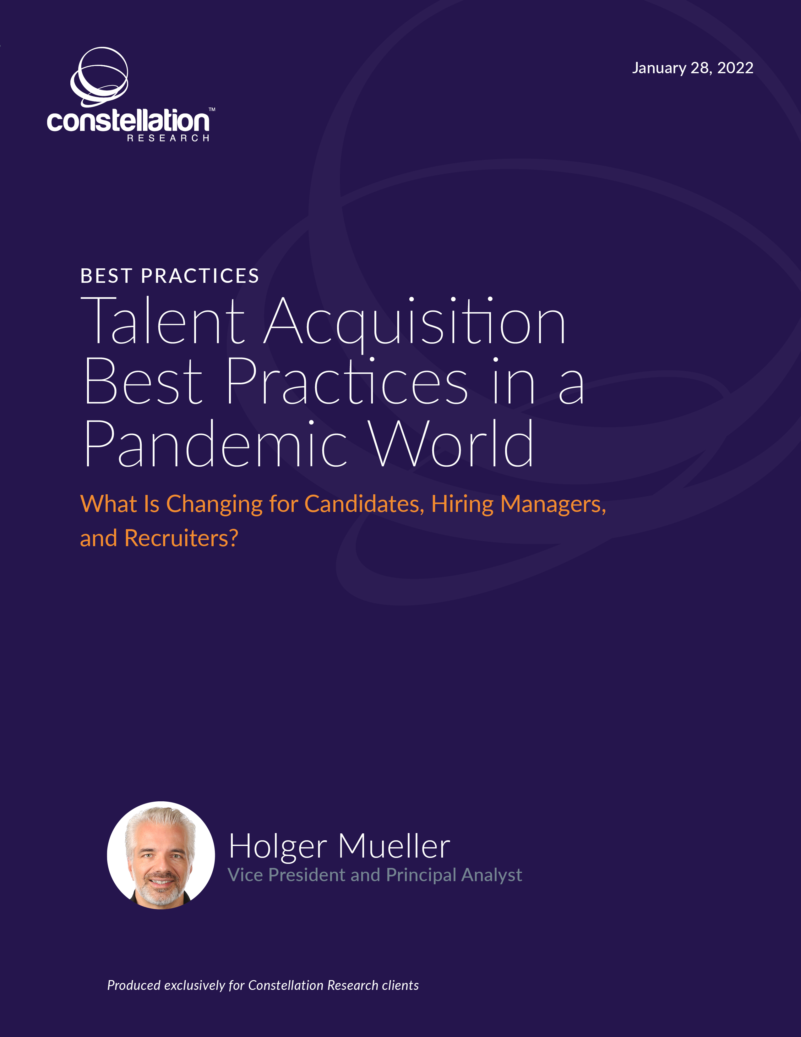This report covers the trends that underly the best practices of talent acquisition systems. It describes trends that affect candidates, hiring managers, and recruiters, with special consideration of changes in best practices resulting from the COVID-19 pandemic. It also analyzes and discusses the top people trends that affect the workplace in general and talent acquisition specifically.