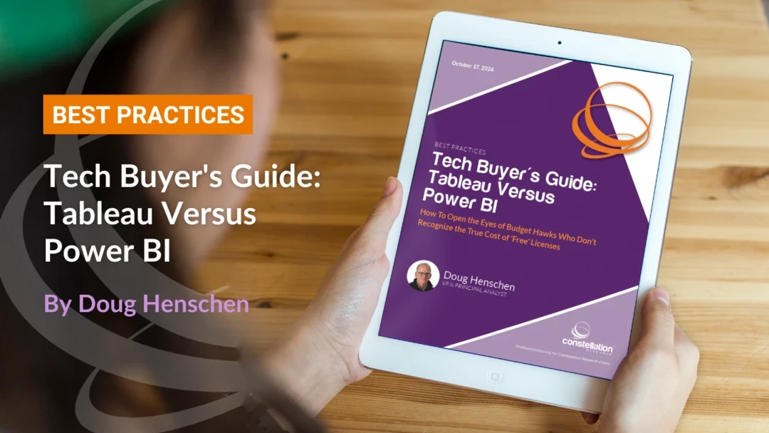 This report examines the various reasons customers cite for choosing Tableau, renewing with Tableau, doubling down on Tableau Server to meet their on-premises needs, and/or deploying in the cloud with Tableau Cloud. The research considered factors including setup and deployment time; administrative burdens; ease of use and training requirements for analysts and business users; and the appeal of innovative new features, including generative artificial intelligence (GenAI) capabilities. The report also shares advice from buyers and Constellation Research on how to get more value from Tableau investments. Analytics and BI platform buyers should use this report to gain insights from their peers and from Constellation Research as they head into analytics and BI selection projects and contract renewals.