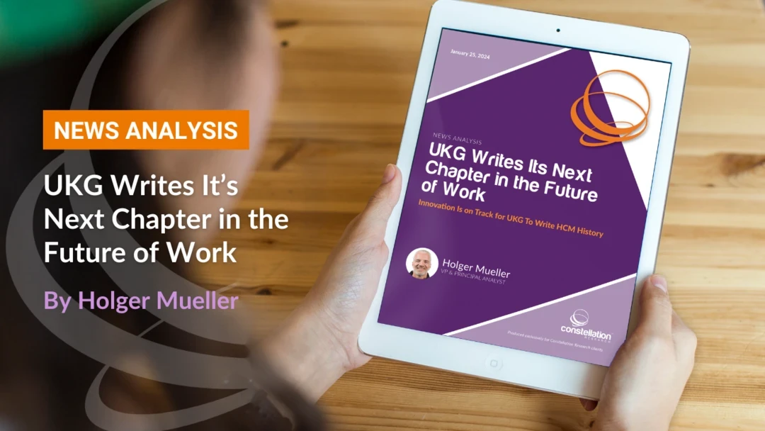 At Aspire, UKG showed that these efforts are well under way, prompting the title of this Constellation Research News Analysis report. UKG is not only creating a new unified human capital management (HCM) suite for large enterprises but is also undertaking a platform overhaul: Besides providing its low-code platform, FleX, UKG is also adopting generative artificial intelligence (GenAI) across its offerings and pushing further into international HCM automation and global payroll with its recent acquisition of Immedis. A merger of product suites at the scale of the former Kronos and Ultimate Software suites has never been undertaken successfully in the history of HCM software, so UKG literally is writing not only its own next chapter but also the next chapter for the entire HCM industry.