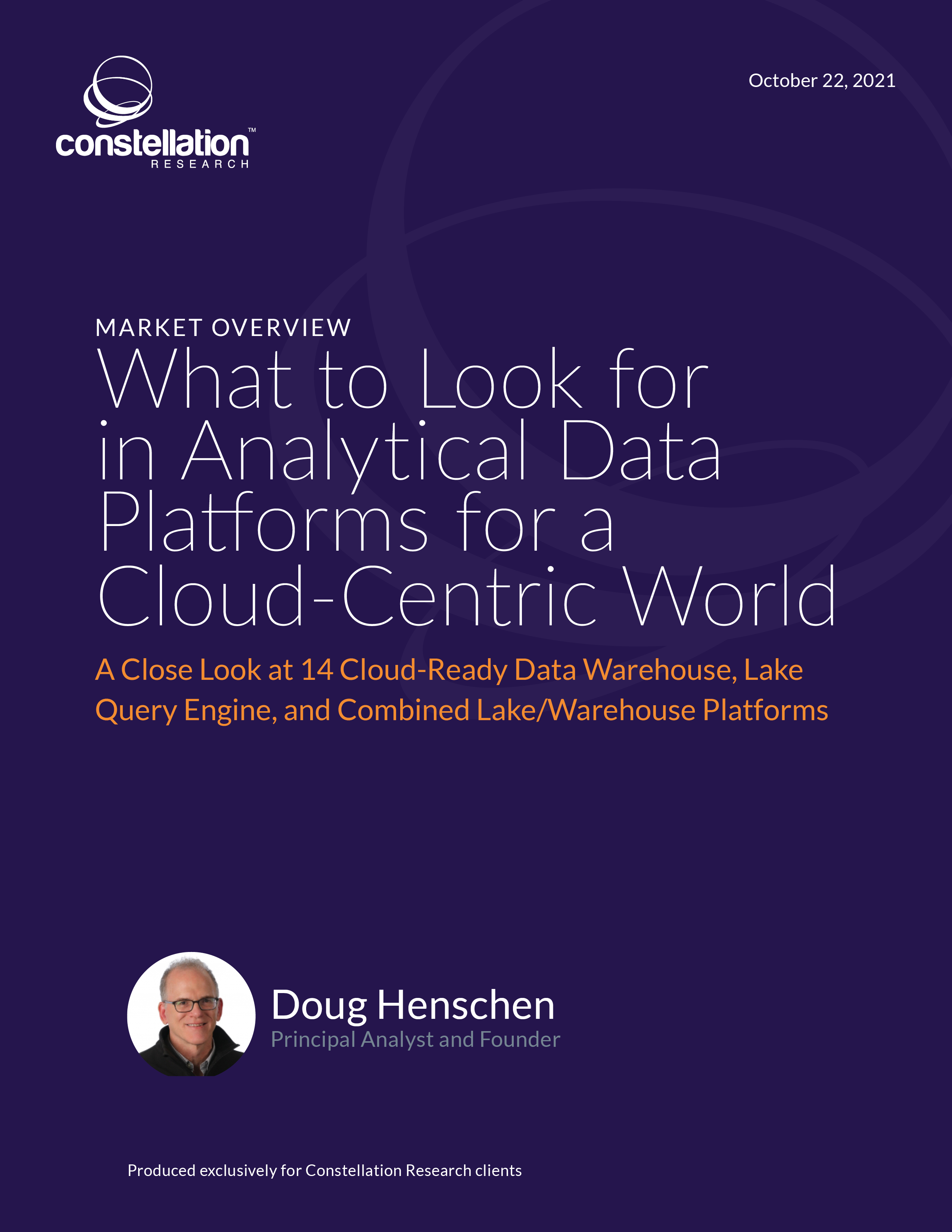 This market overview evaluates 14 high-scale analytical data platforms, including DBMSs, lake query engines, and combined lake/warehouse platforms. Most of the featured offerings are delivered as cloud services, but the report also details the availability of cloud marketplace offerings as well as software and specialized appliances that can be deployed on-premises. The report identifies key market trends and buying criteria and evaluates the key differentiators, functional capabilities, and strengths and weaknesses of each offering. Technology buyers should use this report to evaluate analytical data platforms for implementation.