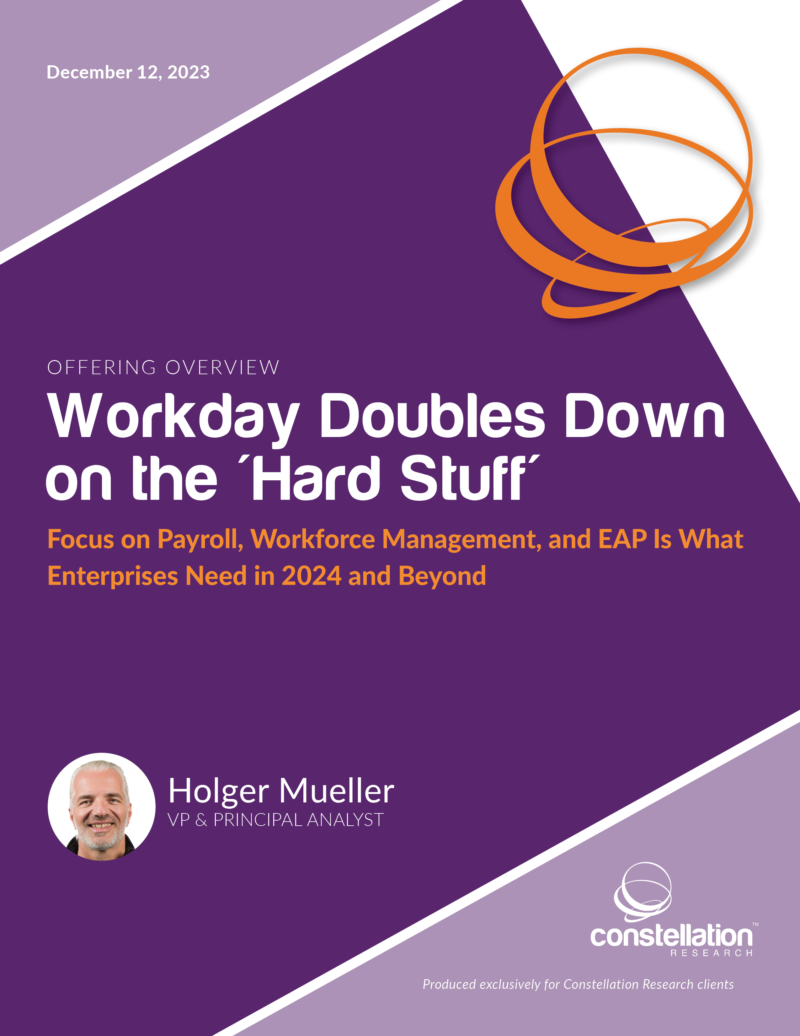 Moreover, Workday sets itself apart from the other vendors covered in the underlying Constellation HCM Market Overview with a well-defined and -delivered suite architecture that gets the time, pay, and benefits equation right as well as providing strong talent management capabilities. It also is a full enterprise resource planning (ERP) suite that caters to the needs of enterprises looking for an ERP solution with strong HCM. Workday deserves full credit for being both a pioneer and advocate for HCM to move to the cloud. It faces a change at the helm in 2024, with founder Aneel Bhusri handing over the keys to current co-CEO Carl Eschenbach.