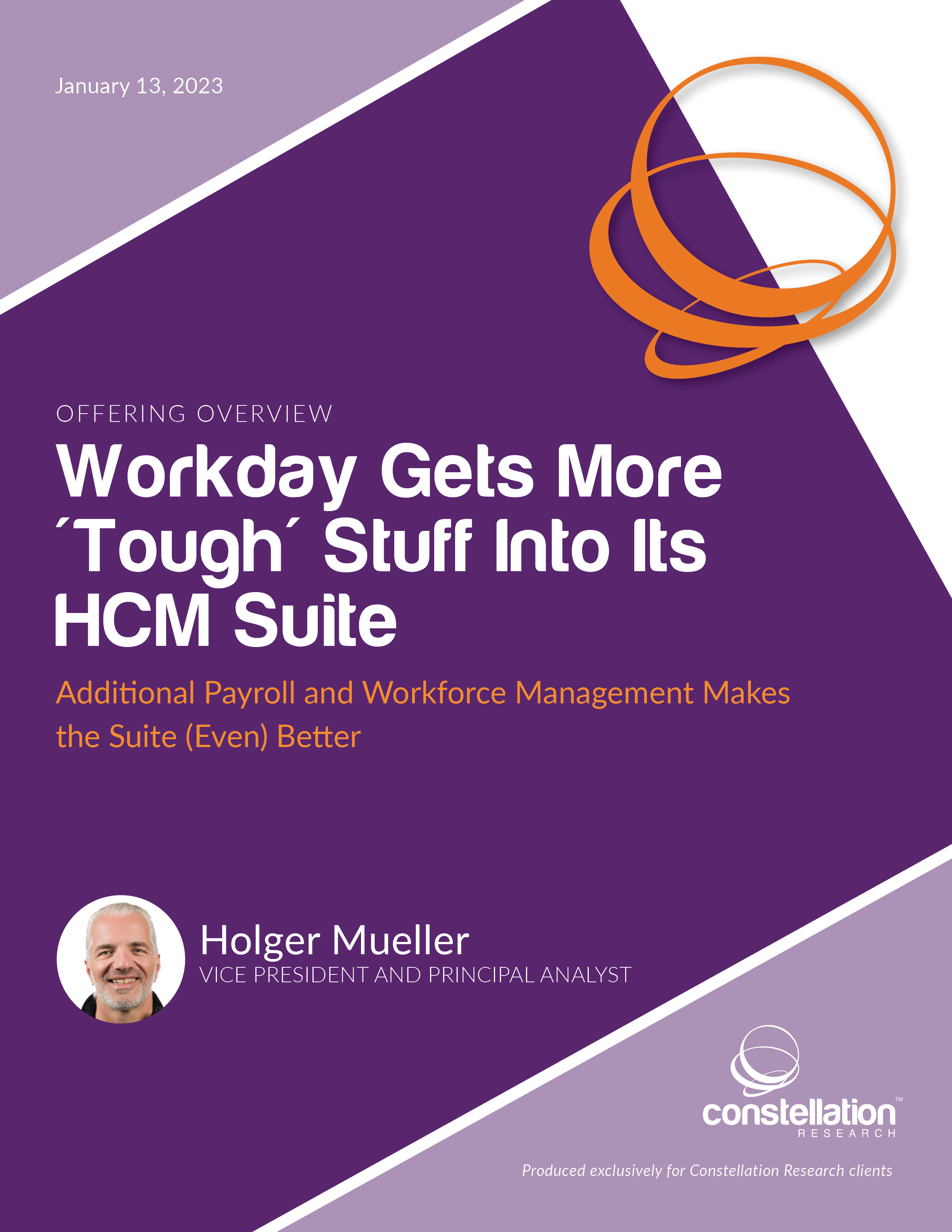 Moreover, Workday sets itself apart from the other vendors covered in the underlying Constellation HCM Market Overview with a well-defined and -delivered suite architecture that gets the time, pay, and benefit equation right as well as providing strong talent management capabilities and an organizational DNA that excels at execution.