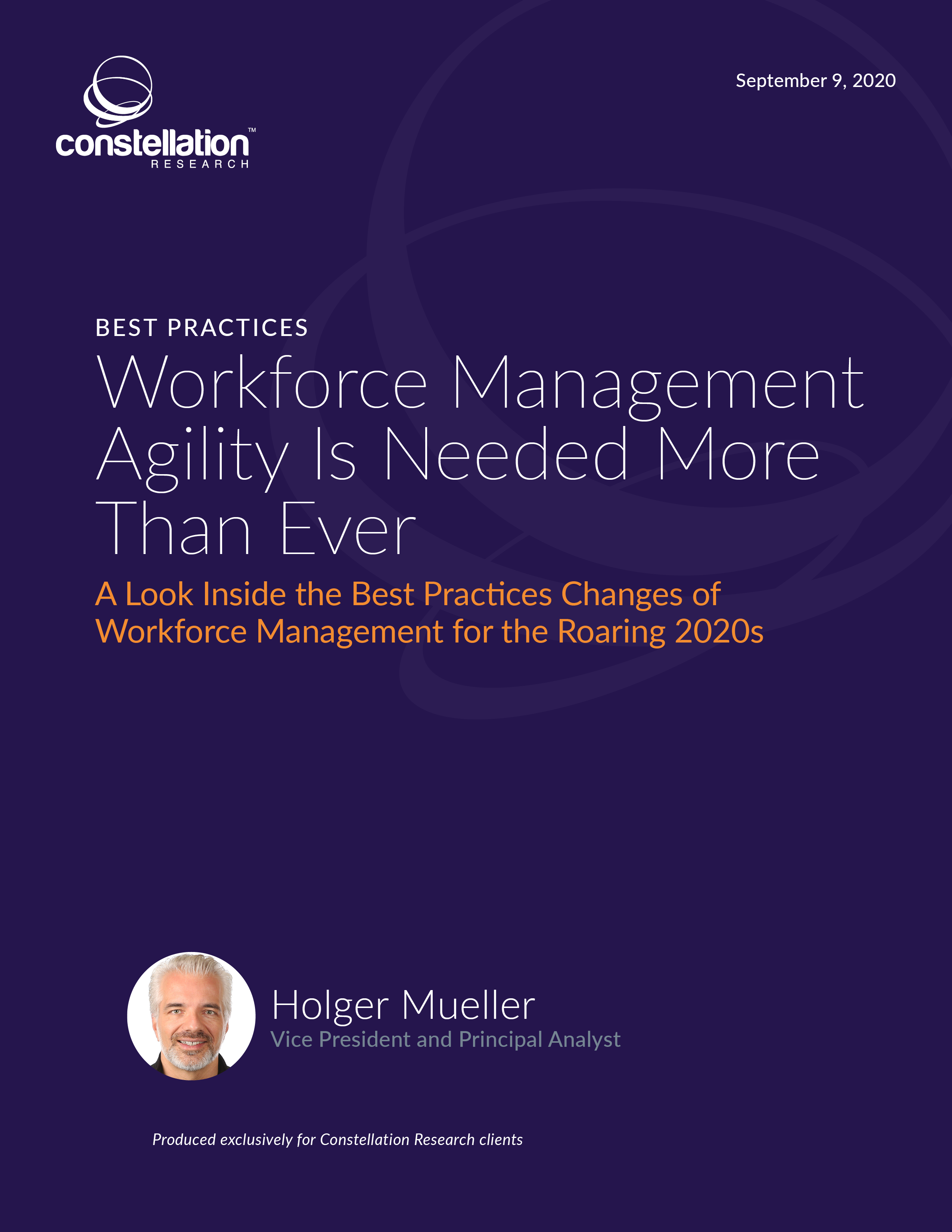 This Best Practices report covers the trends that underly the operation of workforce management systems. It describes criteria that CxOs need to apply to the selection of such workforce management systems, with special consideration of changes in best practices resulting from the SARS-CoV-2 pandemic. It also analyzes and discusses the top people trends that affect the workplace in general and workforce management specifically.