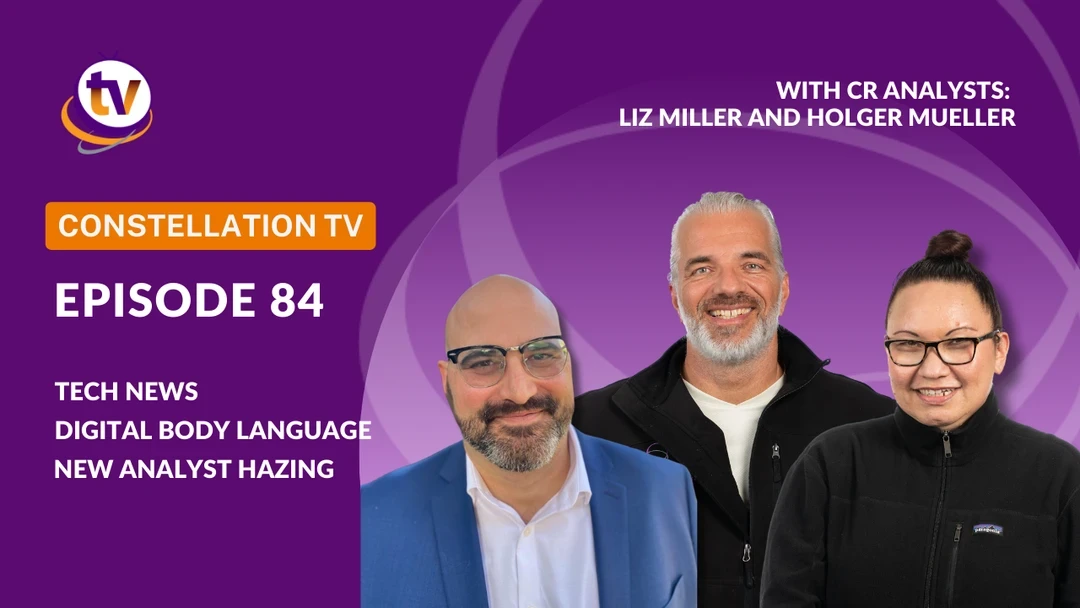 This week on ConstellationTV episode 84, hear co-hosts Liz Miller and Holger Mueller analyze the latest enterprise #technology news and events (Formula1 #technology, #aws Summit, Cancelled #hubspot acquisition).