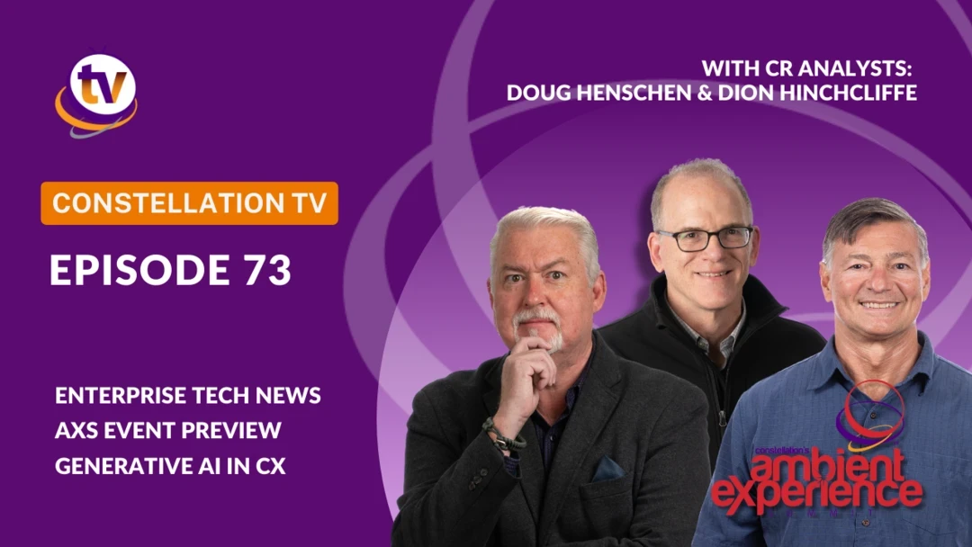 ConstellationTV episode 73 just in! 🎬 Catch this week's co-hosts Dion Hinchcliffe and Doug Henschen talking enterprise tech news with Larry Dignan, then Dion shares Generative AI trends in CX and Liz Miller explains why you don't want to miss Constellation's 2024 Ambient Experience Summit in Austin, TX.