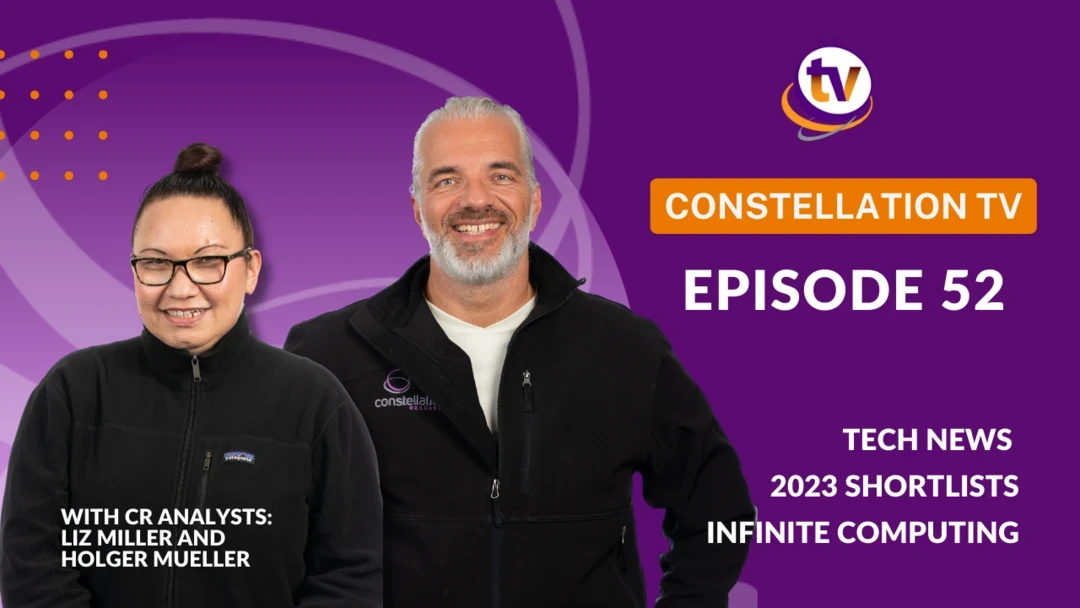 ConstellationTV Episode 52 features analyst co-hosts Liz Miller and Holger Mueller discussing the latest #tech news, newly released Q1 Shortlists naming leaders in each coverage area, Holger's upcoming research on event-driven architecture, and a #CCE2022 panel on the future of Infinite Computing feat. Kirk Bresniker of Hewlett Packard Enterprises and Bob Thome of Oracle.
